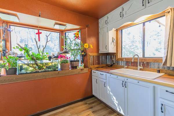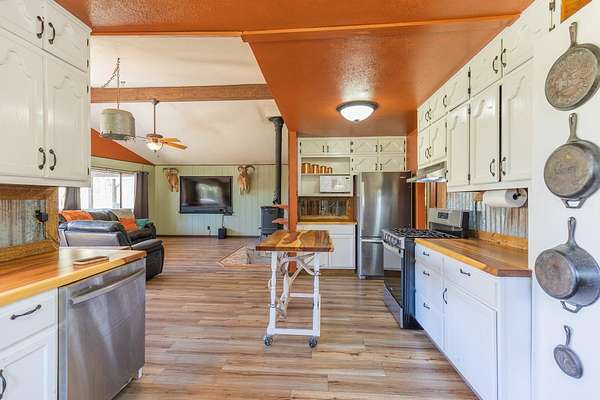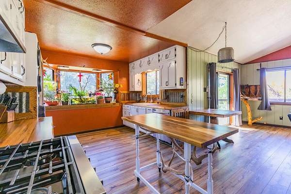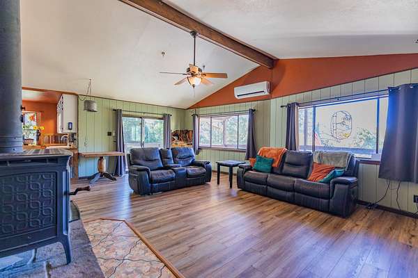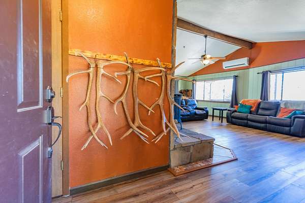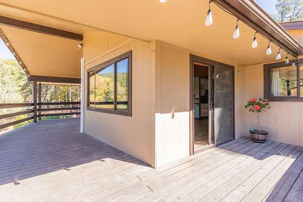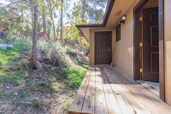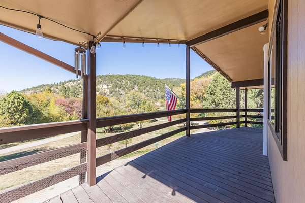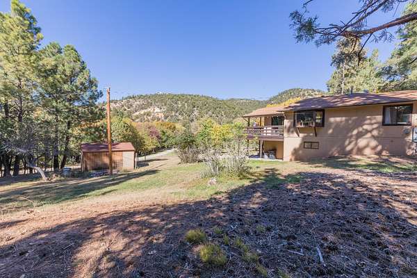 Privacy, comfort, and mountain living, in the sought after Haynes Canyon are of High Rolls, NM! Hidden from view and tucked away on 1.81 acres, this peaceful mountain retreat offers exceptional seclusion and privacy. The home cannot be seen from the road, creating a tranquil setting surrounded by fruit trees, visiting wildlife, and quiet mountain scenery. Numerous recent updates—including luxury vinyl flooring and new appliances—enhance both the comfort and functionality of this 4-bedroom, 2-bath home. A spacious wraparound balcony stretches along three sides of the house, providing the perfect place to enjoy morning coffee, fresh mountain air, and the beauty of the natural landscape. Inside, the living room impresses with soaring cathedral ceilings and large windows that fill the space with natural light. The flexible floor plan offers great versatility: the upper level features the primary suite and an additional bedroom, while the lower level includes two more bedrooms and a full bath—ideal for guests, family, or multi-generational living. A highly efficient Hearthstone wood-burning stove keeps the home warm and inviting, complemented by a propane furnace for added convenience. Additional highlights include ample storage space, a Morgan storage shed, and 37 minutes of ditch rights for irrigation water use. Surrounded by nature and peaceful scenery, this property offers the perfect balance of privacy, comfort, and mountain living. Schedule your private showing today! And check out the virtual tour: https://my.matterport.com/show/?m=FhpLxcvznwC&mls=1