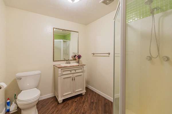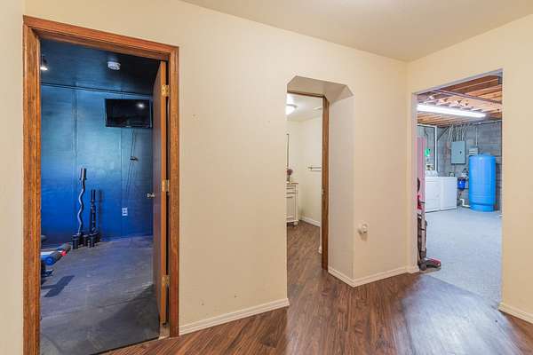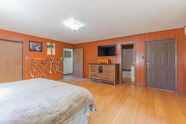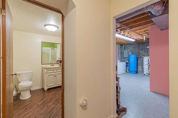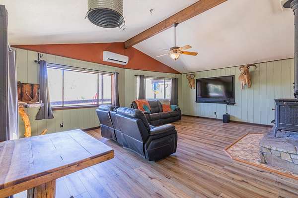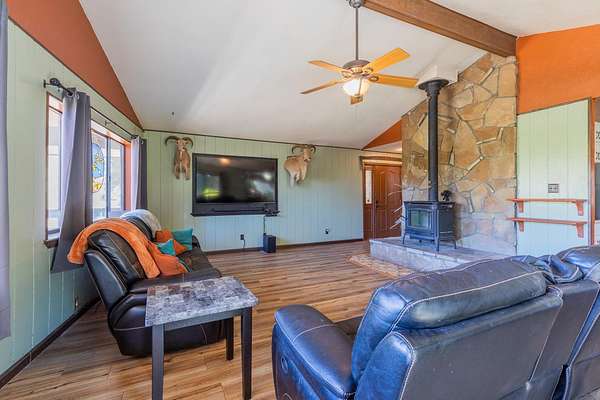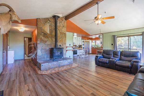 - Basement Finished, Carpet, Eat in Kitchen, Flooring, Hardwood, Slab, Solid Surface Countertops, Tub & Shower, Vaulted Ceiling, Vinyl, Wood Stove