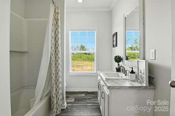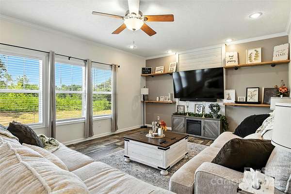 Located off a peaceful, publicly maintained gravel road in the rural countryside of Olin, this modern farmhouse-style 3BD/2BA modular home, built in 2023, offers bright and airy living with 9-foot ceilings and plenty of natural light throughout. The luxuriously sized primary suite features a spa-like bathroom with a large walk-in shower and sit-in tub, providing a serene retreat. The open kitchen includes all appliances and a spacious walk-in pantry, perfect for meal prep and storage. Additional storage needs are met with a convenient outbuilding that stays with the property. This home blends rural tranquility with modern comforts, offering privacy and charm. A rare find in Olin's scenic countryside.