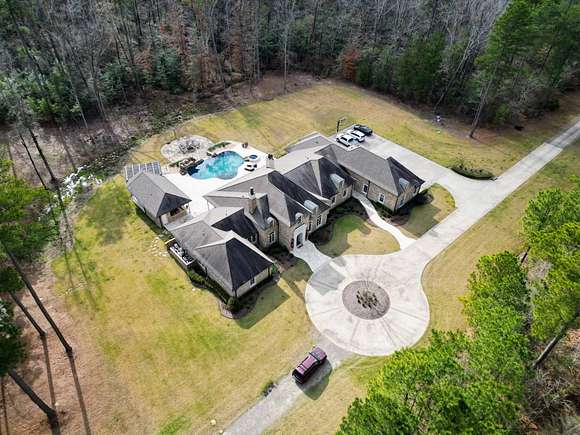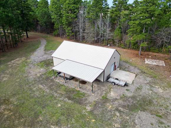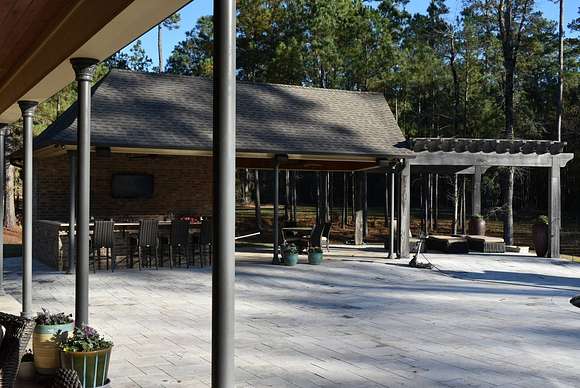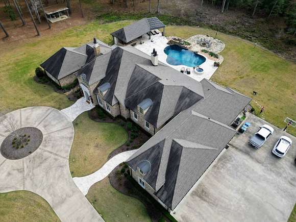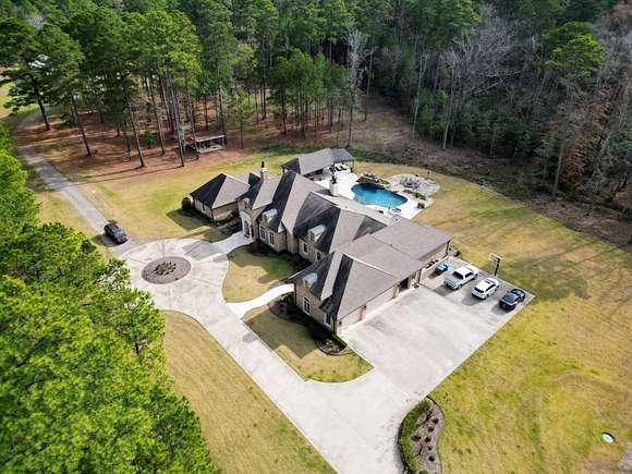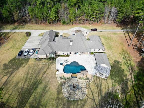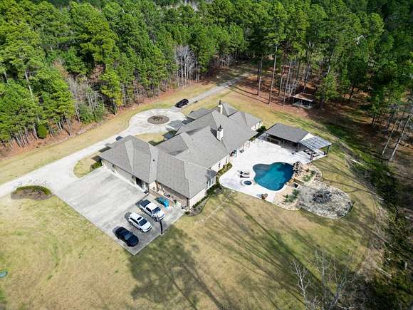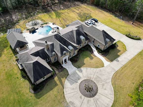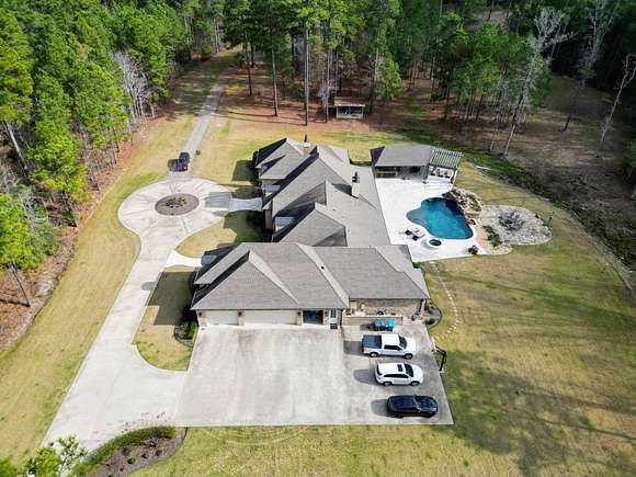 Custom Built Home built in 2017, on 20 acres with-in 3 miles of Magnolia. It has 5639 square feet, has hardwood floors with 4 Bedrooms and 4 1/2 Baths. The Master Bath futures marble flooring, a Carrara Marble oxygen tub, steam shower and large walk-in closets. Kitchen is large open area with granite and quartz countertops, limestone flooring, and temperature controlled wine closet. House also a storm shelter/room. There is a Matrix video/audio/sound system which integrates multiple devices in major rooms, the porch and other outdoor living areas. It has a large patio, outdoor kitchen with 1/2 bath, firepit area, built-in bug sprayer for mosquitos and a Infinity Pool with a Water Fall. The property also comes with a 40 foot X 60 foot shop, tractor, two bush hogs a 6' wide and 10' wide and a 6' wide disc. Minerals DO NOT CONVEY! This property has a lot more to offer the new owner, call for showing today. Aerial Photos by Klober Certificate #4828125.