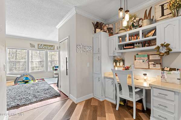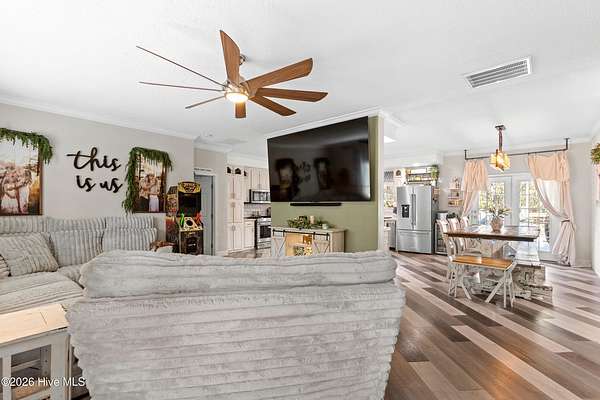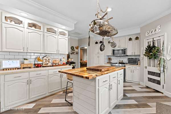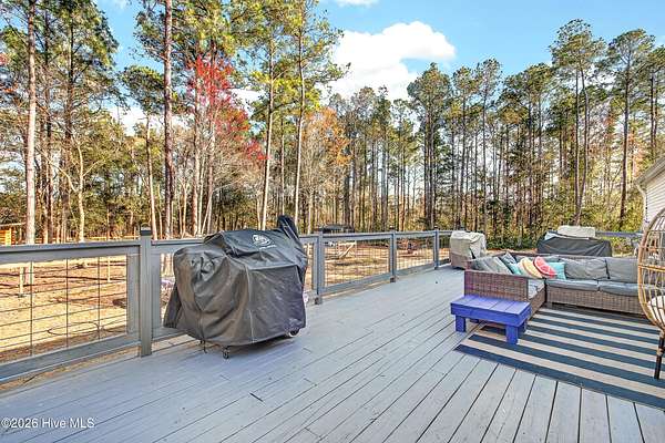 Nestled on 3.99 acres in Hubert, this spacious two-story home offers the perfect blend of comfort, privacy, and room to grow. With 4 bedrooms and 3 full bathrooms, there is plenty of space for everyday living, guests, or a flexible home office setup. Inside, you'll find new flooring throughout the kitchen, living room, hallway, guest bathroom, and laundry room, creating a fresh and updated feel in the main living areas. The remodeled kitchen is a standout feature, equipped with KitchenAid appliances and designed with both functionality and style in mind. In addition to the main living room, the home also features a separate den, providing an additional cozy space for relaxing, a playroom, or a media area. Upstairs you'll find a huge bonus room, offering endless possibilities for a game room, home office, hobby space, or guest retreat. The primary bathroom has been updated with a beautifully remodeled shower, adding a modern touch. Step outside to enjoy the large back deck, perfect for entertaining, grilling, or simply enjoying the peaceful surroundings. The nearly 4 acres of land provide incredible versatility, with an area already cleared for livestock or hobby farming, giving you space for animals, gardening, duck hunting or outdoor projects. If you're looking for a property that offers space, updates, and room to enjoy the outdoors, this Hubert property is ready to welcome you home.