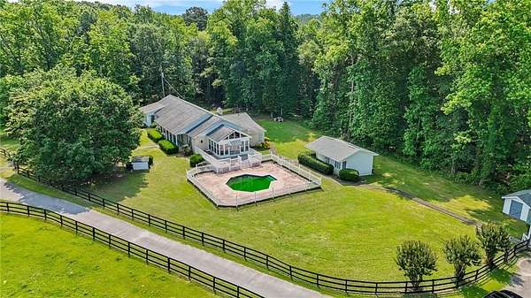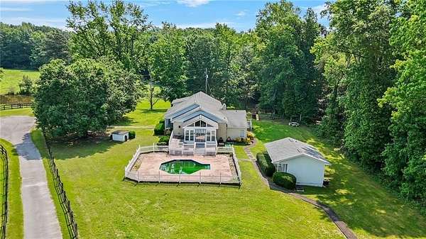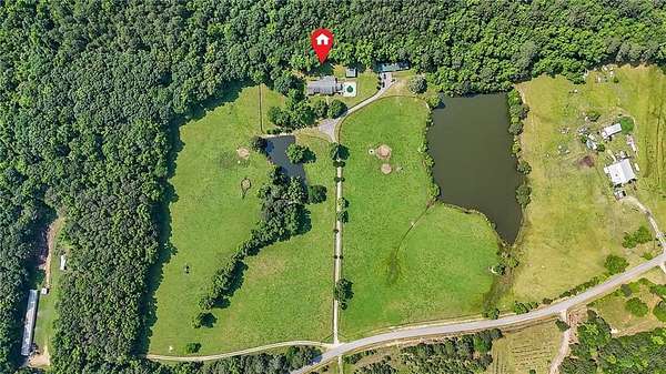 PLease Do Not Contact Seller. Seller will be Re-listing with the same Brokerage...Welcome to Your Dream Mini Farm Retreat! Set on a stunning 13.26 acres, this picturesque mini farm is the ideal blend of rural charm and modern luxury. As you enter through the grand tree-lined driveway, you're greeted by beautifully maintained pastures, two serene ponds, and classic black board fencing that set the tone for this one-of-a-kind property. The heart of the property is a fully remodeled brick ranch-style home offering 3 spacious bedrooms and 3 full bathrooms. Step into an open-concept great room featuring a cozy fireplace, specialty bar, and panoramic views of the land. The gourmet kitchen is a chef's dream high-end stainless steel appliances, granite countertops, working island with prep sink, coffee bar, and custom cabinetry throughout. Entertain with ease in the oversized dining room that seats 12+. The private master suite is a true retreat, complete with his and hers closets, dual vanities, a garden tub, and a sun-drenched porch that leads directly to your inground pool perfect for quiet mornings or weekend gatherings. Additional highlights include floor-to-ceiling windows, updated mechanicals (including a brand-new HVAC unit"2024), two hot water heaters, and blown-in insulation. The home also features a lower-level guest suite with its own bedroom and bathroom, added in 1999. Need more space? The property includes a separate guest quarters with its own parking, storage, and room for farm equipment. Whether you're dreaming of a hobby farm, entertaining in style, or simply enjoying the beauty of country living, this property delivers. And yes cattle are negotiable, except for the beloved family cow, Browne. Now's your chance to own a private retreat that has it all space, luxury, and serene surroundings. Schedule your private tour today and start living the lifestyle you've been dreaming of.