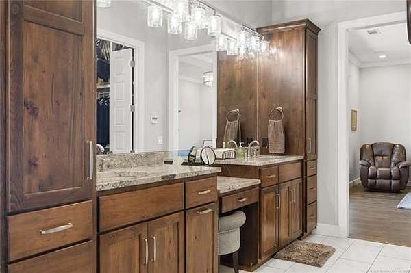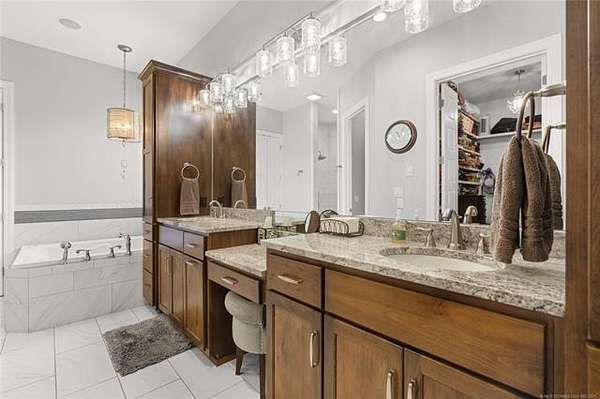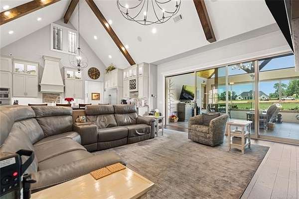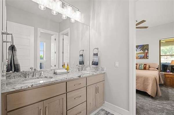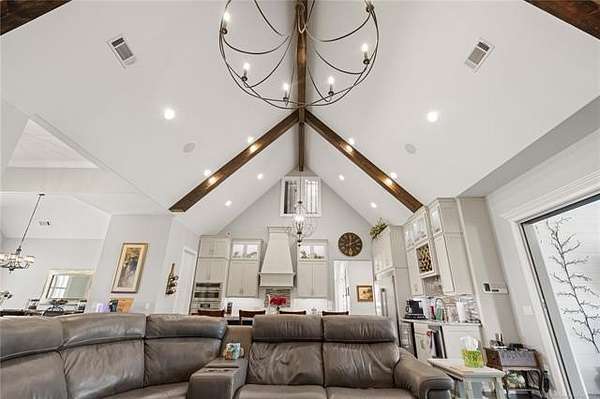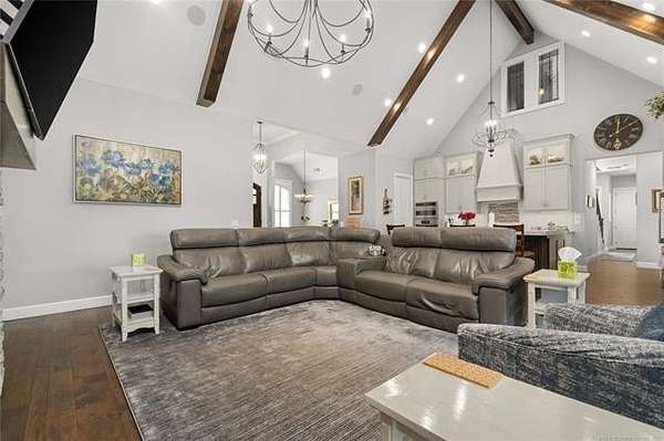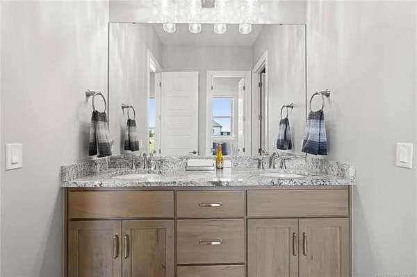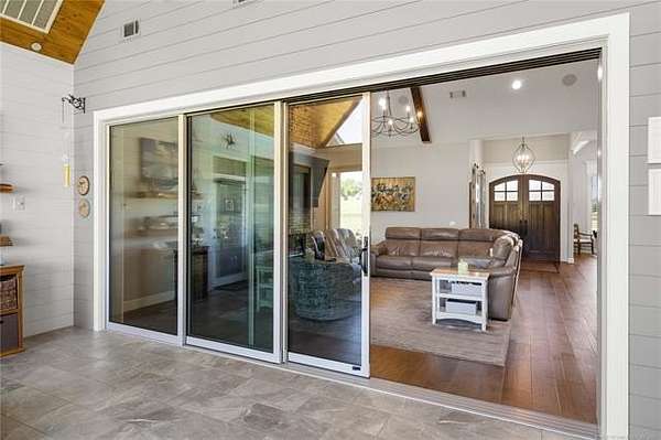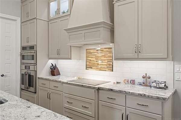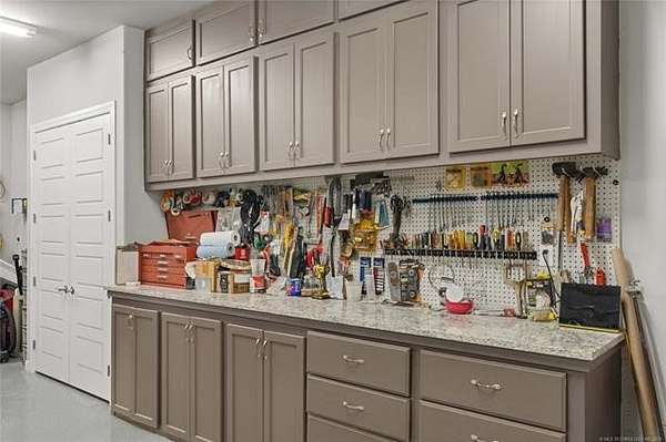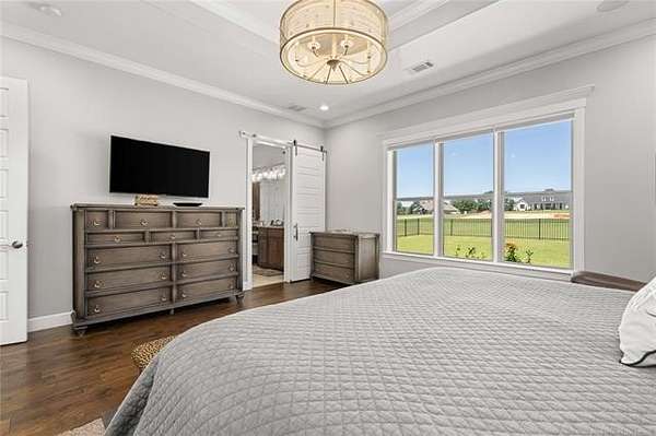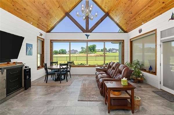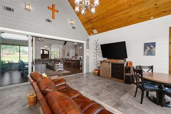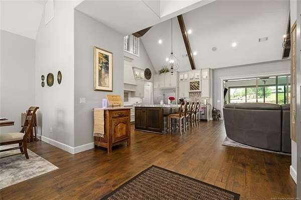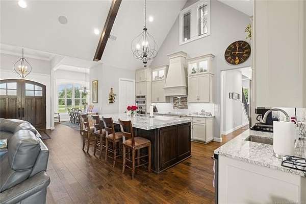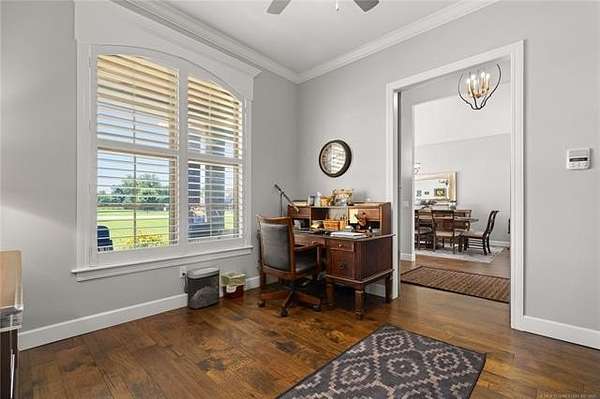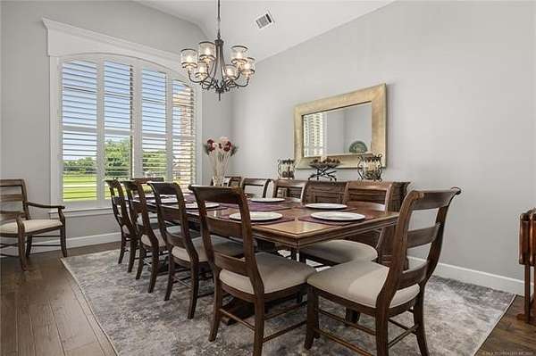 Step into elegance & comfort with this stunning custom-built home in the sought-after Dawson Ridge neighborhood. Impeccably maintained by its original owners. Enter through a grand 10-foot ceiling foyer flanked by a formal dining room with classic plantation shutters & a versatile office/5th bedroom, complete with a murphy bed, walk-in closet, & matching shutters. The heart of the home reveals a breathtaking vaulted ceiling with wood beams in the spacious den, anchored by a beautiful electric fireplace. This inviting space flows seamlessly into the gourmet kitchen & sunroom, creating an ideal setting for everyday living & entertaining. The kitchen features custom cabinetry with under-cabinet lighting, granite countertops, a large center island, walk-in pantry, bar fridge with wine rack, & an ice machine. The induction cooktop & convection microwave that doubles as a second oven make holiday hosting effortless. Natural light floods the charming sunroom, where shiplap walls and 16-foot sliding glass doors add character and flexibility-perfect for entertaining or quiet relaxation. Two guest bedrooms with walk-in closets are tucked on one side of the home, sharing a stylish Pullman bath with a tiled walk-in shower & dual vanity. The expansive primary suite is a private retreat on the opposite wing, offering dual sinks, a makeup vanity, luxurious whirlpool tub, tiled walk-in shower, & his-and-her closets. Upstairs, a large bonus room serves as a 4th bedroom/game room with a full bath, walk-in closet, & access to encapsulated attic insulation, which is also throughout the home's walls for optimal efficiency. Modern conveniences include a whole-home intercom/radio/Bluetooth & stereo system with three audio zones, a full-house generator for uninterrupted comfort, & meticulously climate-controlled garages-one of which includes a workshop space. A beautifully landscaped yard in a welcoming community, this home offers unmatched quality, thoughtful design, and refined living.
