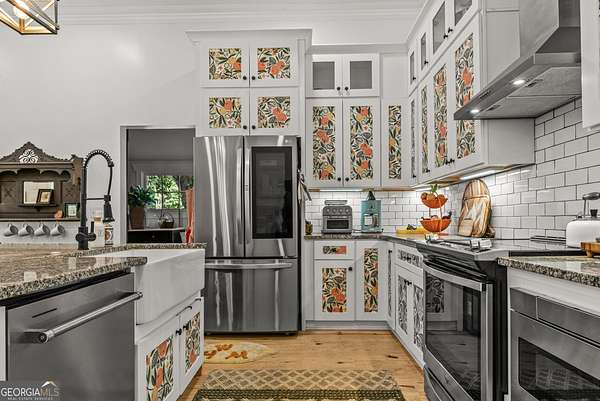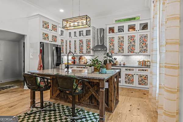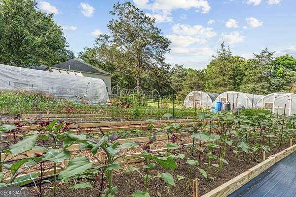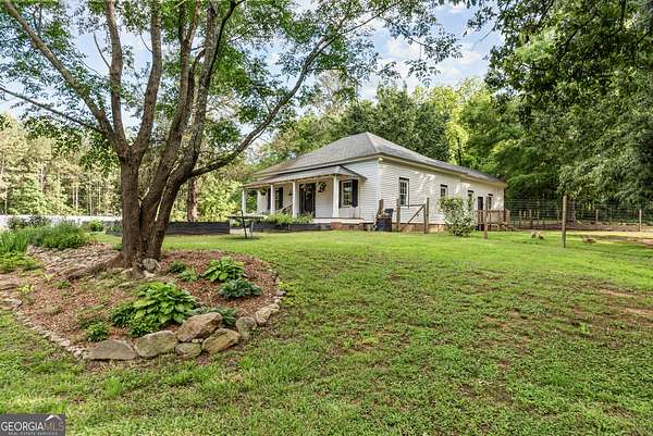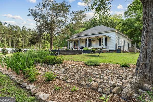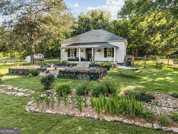 Welcome to Hamilton Farms-a storybook homestead where historic charm meets modern comfort- located in the desirable LOA school district. Just minutes from downtown Madison, GA, this beautifully restored farmhouse is set on nearly five acres in the heart of Greshamville's scenic farming community. Blending timeless elegance with turnkey functionality, the property features three fully equipped grow houses, raised garden beds, a chicken coop, and multiple outbuildings-perfect for sustainable living or a creative business venture. Outdoor living at its finest: spend the golden hour in the parterre de broderie garden by the firepit, host guests on the wide front porch, or enjoy the peaceful blend of manicured gardens and surrounding hardwood forest that offer both beauty and privacy. Inside, the light-filled home boasts a wide central hallway with 11-foot ceilings, board and batten wainscoting, and elegant transom windows. With three spacious bedrooms with ample closets, two updated bathrooms, and an open-concept kitchen and great room adorned with stainless steel appliances, modern tile backsplash, and farmhouse finishes, every detail has been thoughtfully updated. While it feels a world away, you're just: 10 minutes to downtown Madison, 30 minutes to Athens ,and a short drive to Lake Oconee and downtown Greensboro. Whether you're looking to plant roots, grow your own food, or simply enjoy a slower, more intentional lifestyle, Hamilton Farms is more than a home-it's a lifestyle.