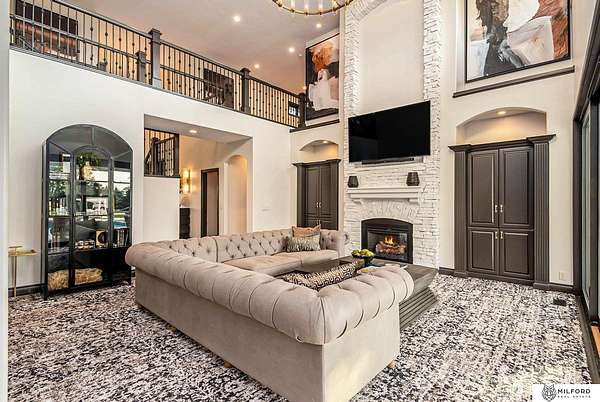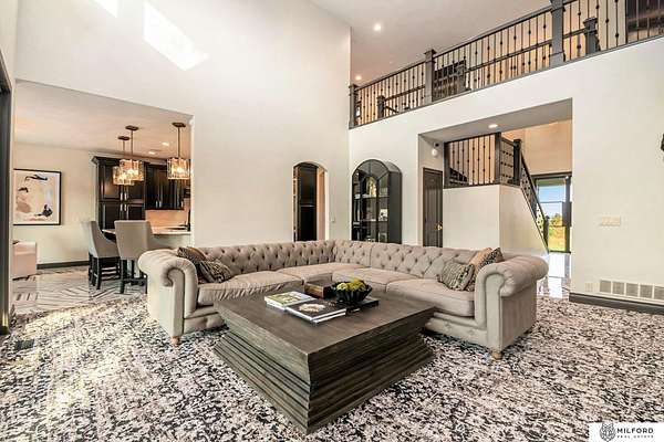 Tony Terp, M: 402-301-1658, Tony@milford.com, https://www.milford.com - This breathtaking estate redefines retreat-style living. Spanning nearly 6,000 sq ft on 3.82 acres, this 5-bedroom + loft, 6-bathroom, 7-car garage masterpiece blends sophistication, comfort, and privacy. Inside, soaring ceilings and walls of windows showcase sunlit living spaces, a chef's kitchen with premium finishes and oversized island, and multiple gathering areas perfect for entertaining or quiet evenings at home. Outside to a backyard sanctuary designed to feel like your own resort. A saltwater pool glistens beneath open skies, surrounded by patios, shaded lounging spaces, and a custom outdoor grilling kitchen that makes entertaining effortless. Gather around the fire pit as evenings with sunsets paint the horizon in rich hues of gold, lilac, and violet, creating nightly million-dollar views you'll never tire of. And the mature trees frame the property for ultimate privacy. One of the lowest mill levies and