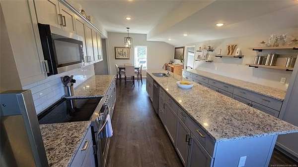 Country charm meets city convenience! This beautiful 10-acre property features gently rolling terrain, lush Bermuda pasture, and a scenic pond. The remodeled, open concept, raised ceiling, three-bedroom, two-bath home (fully remodeled in 2021, including new electric and plumbing) offers warm country living with modern comforts. Enjoy a spacious kitchen with a large island perfect for cooking and entertaining, third bedroom with a private exterior entrance. New roof on house in 2020. The oversized two-car garage includes an attached workshop and tractor barn, plus a separate RV garage. The property is fully equipped for horses or livestock with a 45x33 horse barn featuring six stalls, a concrete floor, a tack/feed room, water and electric. There's also a 30x24 hay/livestock barn and a two-stall stallion barn with its own tack/feed room. Relax on the inviting front porch shaded by mature trees, or take in breathtaking sunsets from the back porch overlooking the open acreage. Plenty of space for gardens, animals, and outdoor projects. Ideal for horse enthusiasts, small-scale farming, or those seeking peaceful country living close to town. Just minutes to Highway 75, Hospital, and downtown Glenpool, 10 minutes to Bixby, and only a short drive to Tulsa Hills and South Tulsa. Whether you continue enjoying the current home, build your dream estate, or explore development opportunities-this property offers endless potential.