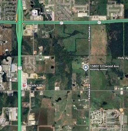 Property is just south of Glenpool on the west side of S Elwood Ave, between W 151St South and W 161st St South. From Hwy 75 East on 151st to Elwood. South to 15802. West side of road.