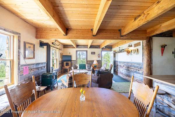 This High Country Cabin offers year-round access to the Flat Top Mountains, nestled on 39.34 acres at 8,850 ft elevation. This off-grid retreat borders White River National Forest and is just 45 minutes from Rifle and New Castle, Colorado. The 1940 sq ft 5-bedroom 2.5 bath log cabin sleeps 12 and is powered by a solar array with backup generator. Zoned for both Rural and Commercial-Lodging uses, it's ideal for private living, short-term rentals, or outfitting. Improvements include a heated 42' x 60' metal barn/shop, garage/workshop, exempt-domestic well, and three catch water ponds. Enjoy year-round recreation - hunting, fishing, hiking, atv's, snowmobiling and more - right from your doorstep. A rare chance to own year-round access at the southern edge of the Flat Top Mountains.
