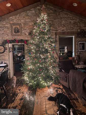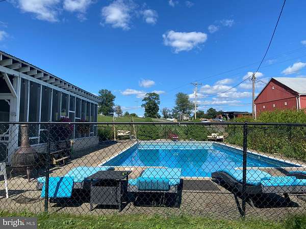 Set on 2.02 picturesque acres, this beautifully maintained stone farmhouse offers a rare blend of historic character, functional living space, and exceptional outdoor amenities. The home features four bedrooms and two full baths, thoughtfully arranged to accommodate both everyday living and guests. The main level includes a spacious primary bedroom, a full bath, and convenient first-floor laundry, providing flexible living options. Upstairs, you'll find three additional bedrooms and a full bath, ideal for family, guests, or home office space. Rich original details are showcased throughout, including exposed stone walls, wide plank floors, and warm wood accents that reflect the home's timeless craftsmanship. Living and dining areas are inviting and well-suited for gatherings, while the kitchen offers ample workspace and storage. Outdoors, the property truly shines. Summer days are best spent by the in-ground pool, complemented by a screened-in pool house ideal for quiet relaxation, gracious entertaining, or poolside dining. Rolling views, open lawn, and mature landscaping establish a serene backdrop, accented by thoughtfully placed wildflower beds, while a dedicated Purple Martin habitat offers a distinctive and rewarding feature for bird enthusiasts. This charming and versatile property provides a peaceful country setting with character, ample space, and the comforts of home.