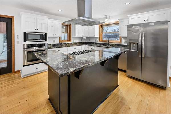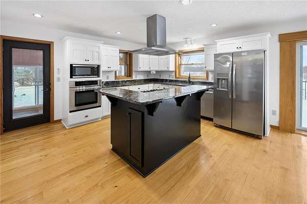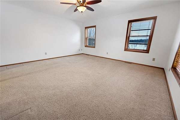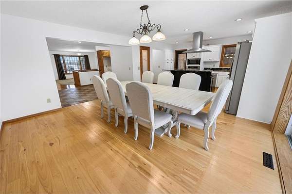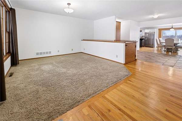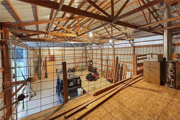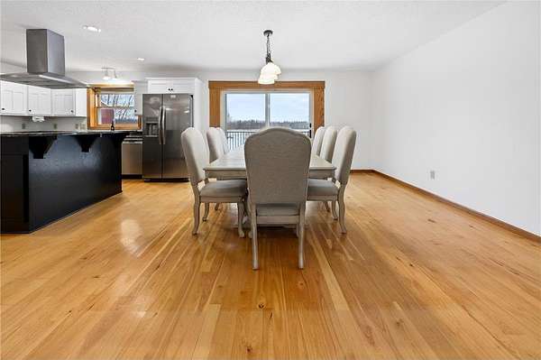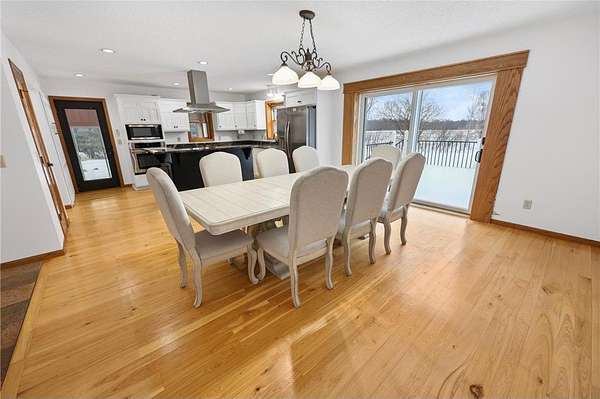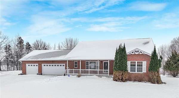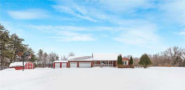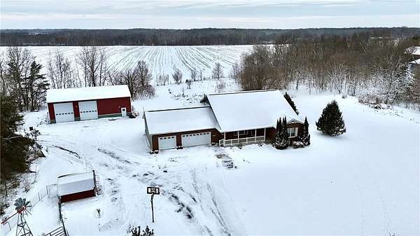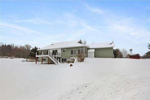 Exceptional 5-bedroom, 3-bath home situated on 7.3 picturesque acres with a private, well-stocked pond featuring sunfish and bass. A classic windmill operates the pond’s aeration system. The main level showcases authentic hickory and oak hardwood flooring, Andersen windows, main-floor laundry, and a large kitchen that opens to a comfortable 3-season porch. In-floor heat enhances the billiards room and adjacent space. Major systems include geothermal heating and a 2023 Trane furnace. 30x60 outbuilding with 22x16 heated workshop, sauna, overhead storage, 16-foot sidewalls, and two oversized 12x14 garage doors with openers.