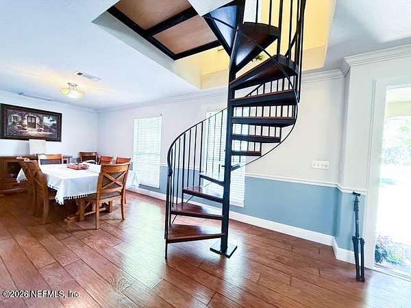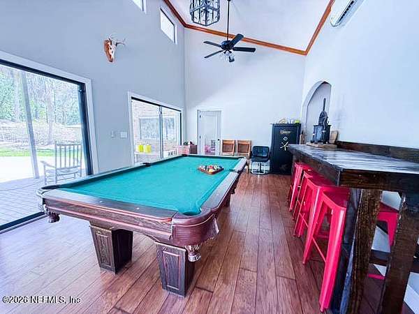 This 3,473 sq ft, two-story brick and stucco home offers four bedrooms, four baths, nestled at the end of a cul-de-sac. Situated on an expansive lot, the property backs up to the Starke golf course. Enter the front door, to the foyer opening up to a spacious main floor living room, dining room, and a chef's kitchen. The kitchen is equipped with beautiful cabinetry, granite countertops, a microwave, oven, separate cook-top, and a convenient breakfast bar for quick meals and entertaining. Beyond the main living areas, an additional room serves as a den, playroom, or game room, perfect for gatherings or relaxation. Off this space is a second owner's suite featuring a full bath with both a tub and shower, adding a retreat ideal for guests or multi-generational living. A beautiful air-conditioned Florida room offers ample natural light, with vaulted ceiling, and a fourth bath. The perfect place to entertain family and friends as they overlook the swimming pool and fenced backyard.