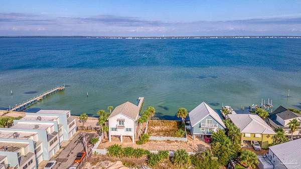 Rare waterfront opportunity on Pensacola Beach. This sound-front lot offers the perfect canvas to design and build your dream coastal retreat on one of the last remaining vacant properties with private pier / dock and boat lift rights. Tucked away along a quiet brick-paved lane lined with only six homesites, the property exudes a Key West-style ambiance, blending timeless island character with privacy and charm. With unobstructed panoramic views across the Santa Rosa Sound, you'll enjoy breathtaking sunsets, gentle breezes, and direct access to the water for an endless array of water activities from boating ,fishing, paddleboarding, kite surfing.... or simply relaxing on your private dock, or on shore on your private beach or deck, The location combines tranquility with convenience-just 3 short blocks from the Gulf's sugar-white sands and emerald green waters, as well as quick access to the Gulf via Santa Rosa Sound and the Intercoastal Waterway. Enjoy local dining, and vibrant island amenities-while offering the peaceful lifestyle of a private enclave. Whether envisioned as a full-time residence, vacation escape, or investment rental property, this lot delivers the perfect blend of privacy, waterfront access, and Pensacola Beach charm. Imagine mornings spent watching dolphins play, afternoons exploring nearby trails and beaches, and evenings unwinding with panoramic sunset and water views from your own backyard. Opportunities like this are increasingly rare on Pensacola Beach. With its prime sound-front setting, established seawall, and inviting neighborhood character, this lot is ready to become the foundation for your coastal dream home.