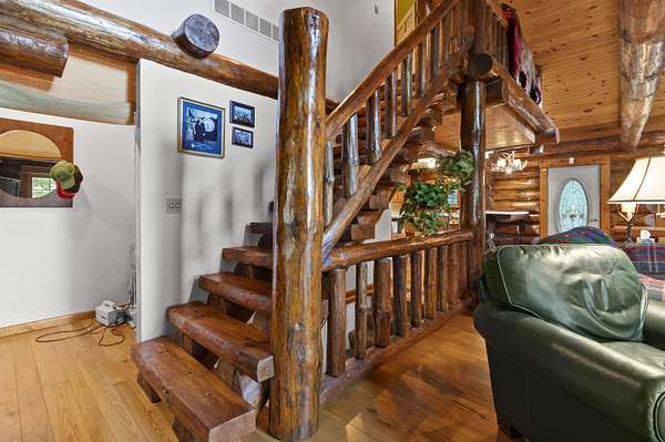 Charming log cabin with frontage on peaceful Gillett Lake. The main level features avaulted great room with stone fireplace and a large primary suite with walk-in closet and private bath. The lower level includes a built-in bar with room for a game or family room-greatfor entertaining. Enjoy quiet, lake days perfect for kayaking or relaxing by the water. The level yard is ideal for outdoor activities or gatherings. Whether you're looking for a weekendgetaway or a full-time home, this property offers privacy, beauty, and year-round enjoyment.