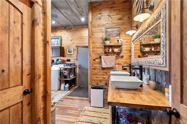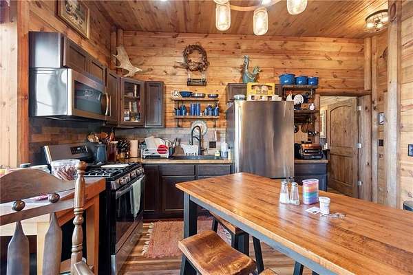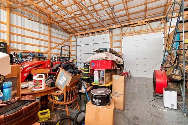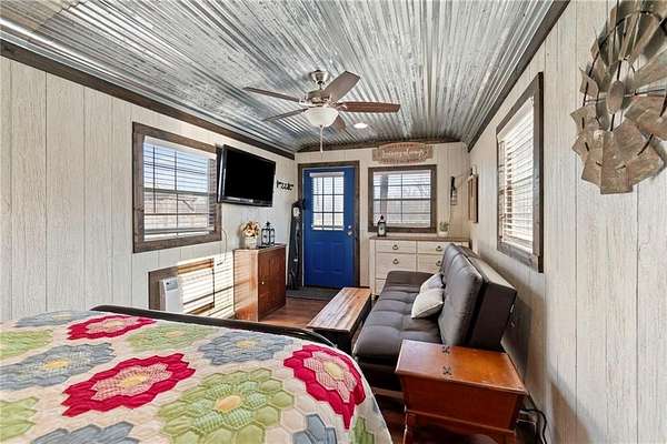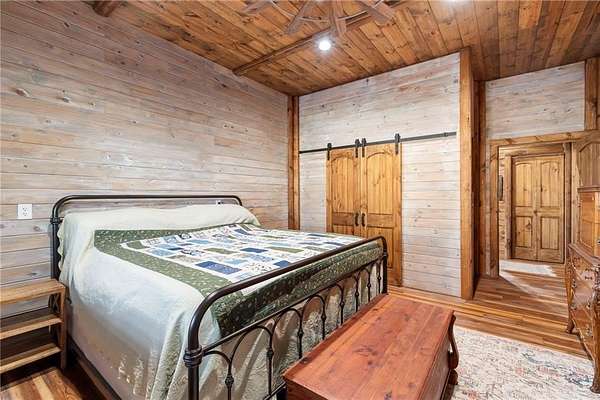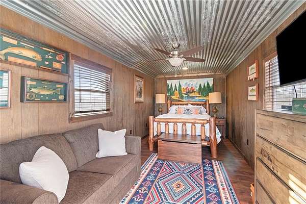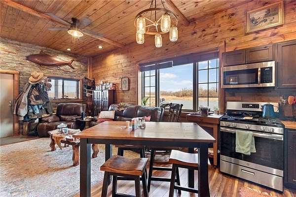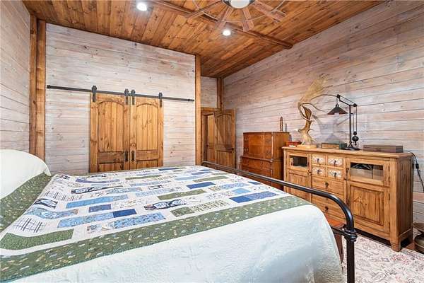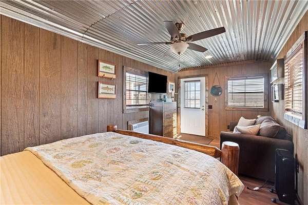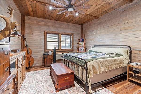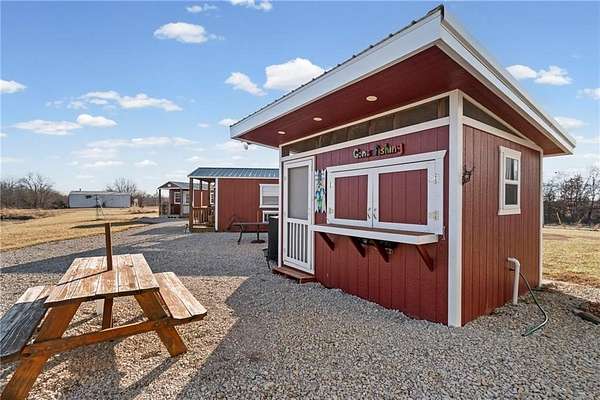 Tucked away in a serene, private setting, this truly once-in-a-lifetime property offers a rare blend of comfort, functionality, and natural beauty. The 1 bedroom, 1 bathroom main residence is thoughtfully designed and features an attached two-bay garage, including a 14-foot RV bay with a 6-inch concrete floor, perfectly suited to house a 36-foot RV, boat, or large recreational equipment. In addition to the main garage, the property boasts a second two-bay garage, 4-inch concrete floor with an attached finished, livable room, ideal for guests, a home office, hobby space, or extended living. Three additional livable cabins provide endless flexibility-perfect for short-term rentals, family retreats, or private guest accommodations. Property also includes a 22 kW propane Generac Guardian backup generator. Outdoor living is nothing short of exceptional. A stunning 4.7-acre spring-fed pond, stocked with fish and clear throughout the summer, serves as the heart of the property. Enjoy peaceful mornings and unforgettable evenings at the dock, fire pit, gazebo, and pondside seating, complete with a cooking grill for entertaining in a picturesque setting. Nature lovers will appreciate the productive orchard, featuring plum, cherry, apple, and peach trees, offering fresh fruit right from your own land. With abundant storage and garage space throughout, there is room for all your toys, tools, and dreams. Whether you're seeking a private retreat, multi-generational living, or a unique investment opportunity, this extraordinary property offers unmatched versatility, tranquility, and charm-an opportunity that truly comes along once in a lifetime.