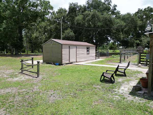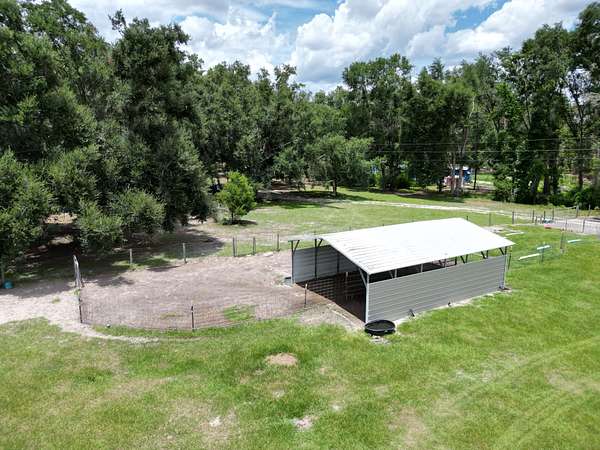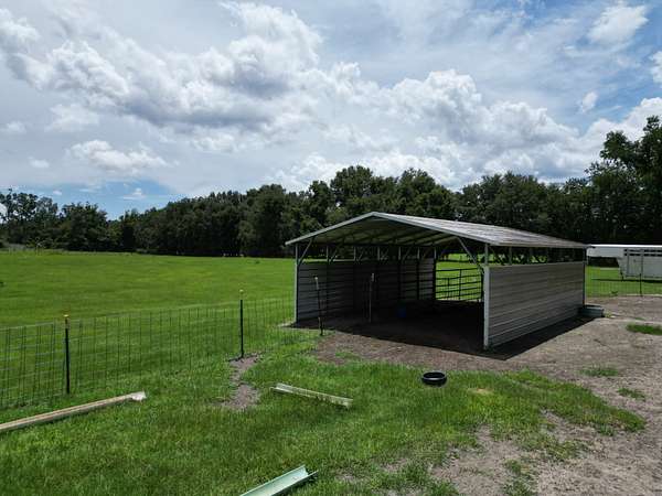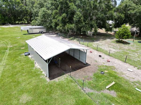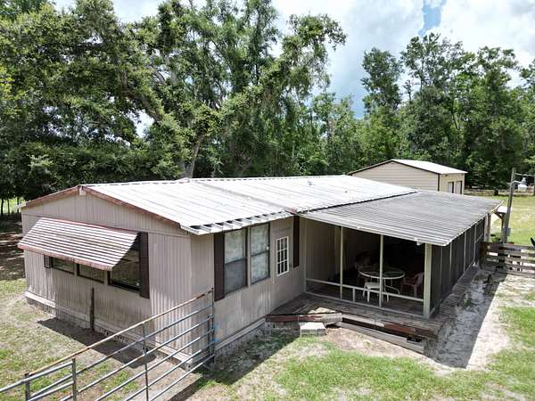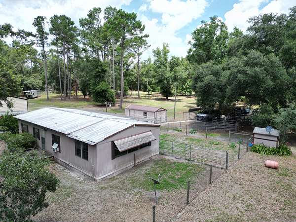 Bring your animals, your vision, and your dreams--this 10-acre property is fully fenced and ready to work for you from day one. A beautiful mix of open pasture and lightly wooded areas creates the perfect balance of grazing space, shade, and privacy. The pasture is planted with triple-seeded Bahia grass, ideal for horses, cattle, goats, or other livestock. A 24' x 40' metal building with a concrete floor, two bay doors, electricity, and ample loft storage offers the perfect space for a workshop, garage, or storage. A 24' x 32' metal animal shelter provides sturdy, weather-protected space for livestock, and a 12' x 24' metal storage building with power is ideal for feed or farm essentials. A 30 AMP RV hookup on site adds even more versatility for guests or temporary living while you make improvements. The property includes an older mobile home that is surprisingly nice inside and completely livable, though the exterior shows its age. For buyers who want to make improvements, replacing the home with a newer model could instantly increase the property's value well above the purchase price, making this a smart investment as well as a comfortable place to live. Located just a short drive from town, this property offers peaceful rural living with modern conveniences close by. Whether you're starting a hobby farm, expanding your agricultural operations, or simply seeking a private country retreat with room to grow, this property delivers.
