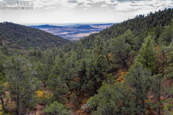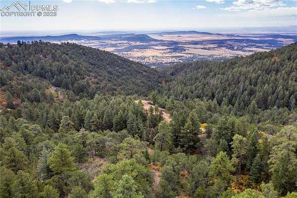 Located in the exclusive, gated Highlands of Turkey Canon Ranch community, this 35-acre parcel offers privacy among mature pines with views stretching down the canyon. Nestled at 7,200 feet in elevation, the property features a roughed-in driveway leading to a potential build site, with utilities already at the lot line. This scenic land offers a rare opportunity to design a custom home within a peaceful, four-season setting. The Highlands is a private enclave of just 23 executive home sites, each ranging from 35 to 40 acres. Paved roads throughout are maintained and plowed by the HOA, with dual gated access enhancing privacy and security to this retreat. Bordered by 35,000 acres of National Wildlife Area to the west and Fort Carson to the east, the community ensures forever-protected views and unmatched serenity. The terrain includes rolling hills, stands of Ponderosa Pine, Douglas Fir, and Blue Spruce, with wildlife sightings and mountain vistas in every direction. Panoramic overlooks include city lights from southern Colorado Springs, the Sangre de Cristo range, the Wet Mountains, and the Spanish Peaks. Residents also enjoy access to 1,600 acres of preserved wilderness, with miles of trails for exploration. Just 11 minutes to Highway 115 and under 30 minutes to the city, this property offers mountain living with convenience close at hand.