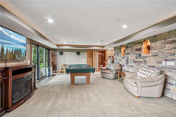 The oversized, heated 4 stall garage with tall ceilings is ideal for storage, hobbies, or all the toys. Inside, you'll find a spacious, open layout with mission style cabinetry, natural woodwork, and great light throughout. The main level includes a private home office, welcoming foyer, cozy stone fireplace in the living room, and a functional kitchen with center island and stainless steel appliances.