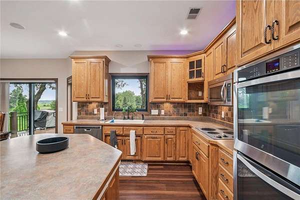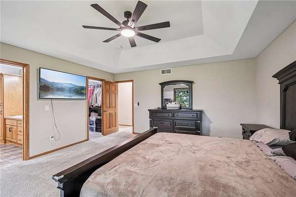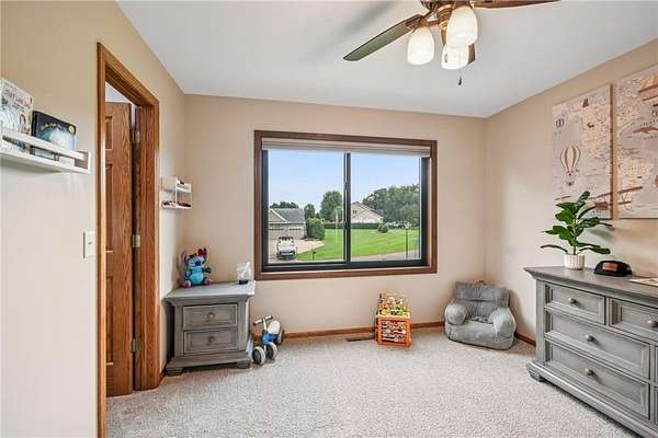 Upstairs, four bedrooms on one level make the layout incredibly convenient, including a large primary suite with a private full bath, jetted tub, and walk in closet. The finished walkout lower level offers even more living space with a huge family room, wet bar, hobby room, and an additional bedroom, perfect for entertaining or relaxing.