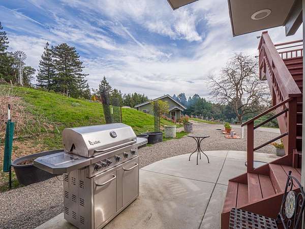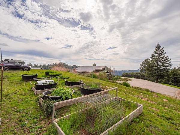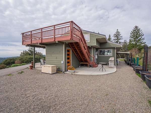 This incredible Corralitos home & property is a true masterpiece! Nestled on a 4.35 acre ridge top parcel, the custom home boasts expansive ocean, vineyard & mountain views and exudes quality features & amenities throughout. Features list for the main home include: walls of windows to take in the amazing views, hand scraped custom wood floors, open beam ceilings, terrific kitchen w/custom cabinets, granite counters, stainless appliances & double ovens; fire resistant Harde plank siding & metal roof, owned solar electricity system; viewing deck; generous attic, work shop, heat pump w/ multiple splits heating system, 2 patios for entertaining & attached carport. Detached permitted guest house/ADU w/kitchen, full bath, solar heat pump combined w/split heating system, attached 2 car garage utilized as a studio (gives you a total of 3 bedrooms/2.5 baths & 2,446 sq ft)-flows like an additional 500 sq ft of living, metal roof+Hardie plank siding. Rolling/sloped parcel, deer fenced, groomed w/mature fruit trees, planting beds, 1/3 share of well generating 27 gallons per minute plus a free-flowing spring provides an abundance of water w/four 5k holding tanks, hard wired generator & much more! You'll be over the moon, come take a walk in the clouds, you are going to love Corralitos living!