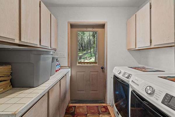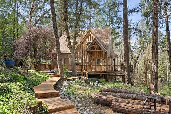 Location, location, location! If you're wanting to get lost in the woods in a cozy property, this is the one for you! This two story charmer features 2 bedrooms, 2 bathroom, 1736 sq ft, 3.63 acres, wrap-around deck (2,500 sq ft of decking), hardwood flooring on the main level w/ pine flooring upstairs, main level bedroom, 2 wood burning fireplaces, vaulted ceilings, spacious kitchen (granite countertops, island, ample cabinetry), open floor plan, 2 detached garages w/ additional shop space above (currently used as an art studio and for storage), gated entryway, raised garden beds, creek frontage, & much more! BLM & ATV trails are nearby as well! Perfect opportunity for anyone that is looking for tranquility and to get in touch with nature! This one won't last long on the market, so contact your agent today for a personal tour, before it's too late!