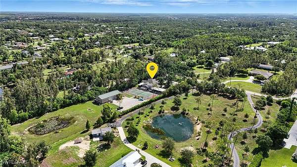 RARE FORT MYERS ESTATE WITH 2.39 ACRES-ONE OF THE LAST LARGE PARCELS LEFT IN THE CITY. Behind private gates in the sought-after Briarcliff community, this 3-bed, 3-bath two-story estate with separate guest quarters offers 5011 sq ft of elegant living, wrapped in lush privacy with a pond, pool, and mature royal palms lining the circular drive. The main home features a chef's kitchen, expansive owner's suite with sitting room, Jacuzzi tub, oversized shower, and two walk-in closets, plus upstairs guest suite and game room. A detached barn with 220 power includes a separate upstairs studio apartment, with private entry and rooftop sundeck above the 4+ car garage. Enjoy private tennis, pickleball, and basketball courts, RV parking with hookups, and peace of mind in FEMA X500 zone with no flood insurance required, a whole home generator, whole-house water softener system, and prior monthly preventative pest and termite treatments. Estate-hired lawn care is available including treatment, edging, weed treatment, and more, to keep these items off of your to-do list while keeping your mind at ease. All this just minutes from city life with all the necessities nearby and less than 10 miles from Fort Myers Beach, yet tucked away in a world of its own. Schedule your private showing today!
