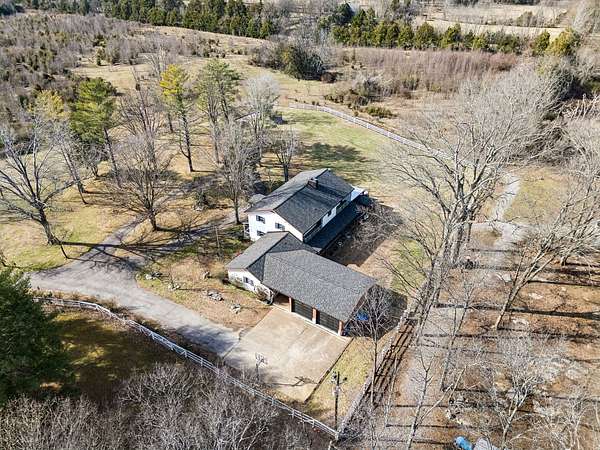 Logistics: Includes a detached garage, a separate professional workshop, and a functional barn/stable setup.