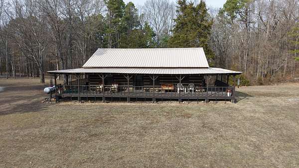 This move-in-ready log cabin resides on 2.7 acres in the Ozarks of Melbourne, Arkansas.