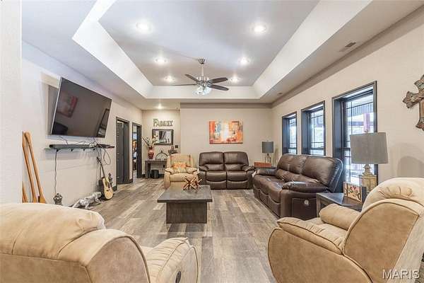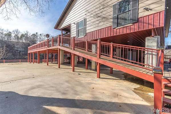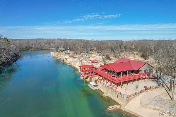 This is one of the best cabins on Current River AND one of the nicest private beaches! Almost four acres of riverfront property covering three lots. Home was built in 2019 above the 2017 flood line! As amazing on the inside as the outside. 4 bedrooms, 2 1/2 baths, with large living room, and stainless appliances. FULLY FURNISHED, this is an absolute showplace! Outside, you will find one of the most elaborate entertaining setups in this area. Two levels for the family and friends to enjoy including a covered deck with composite decking. There's an extended covered deck that goes out over the beach. The pontoon boat and hot tub stay! The next two lots up river with great sand beaches are all part of the property. Room for privacy or rental income potential with 8 RV hookups ready to go. Professionally built seawall with plenty of steel posts, stem walls, and concrete to protect the property from the effects of the river. Also includes a NEW PRIVATE BOAT RAMP! Too much to mention here.