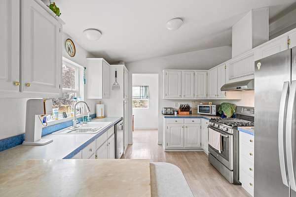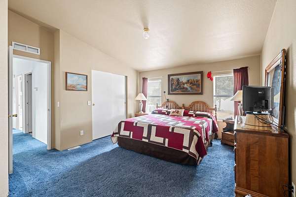 - Ceiling Fan(s), Fiberglass Stall Shower, Laminate Counters, Pantry, Primary Downstairs, Shower/Tub Combo, Vaulted Ceiling(s)