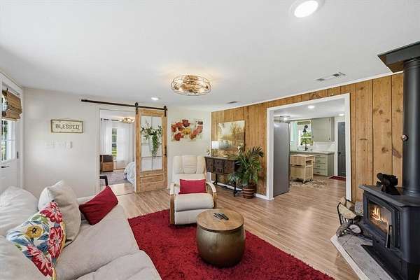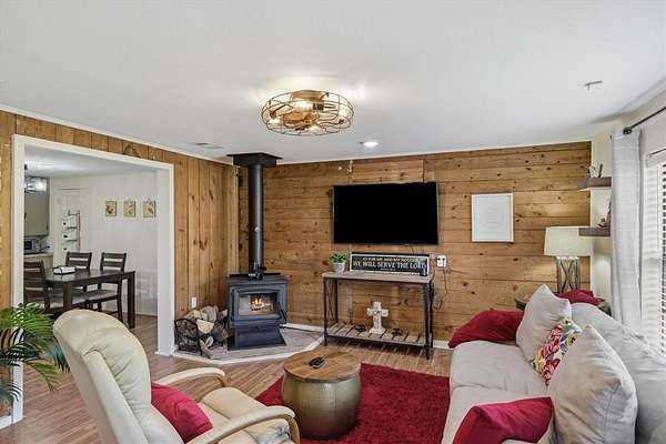 - Central, Electric, Fireplace(s), Wood, Wood Stove