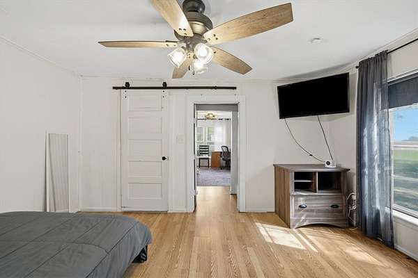 Charming true farmhouse, pond and workshop on 1.527 acres, just outside the city limits in the highly desired Edgewood ISD. Offering a peaceful country setting with no known restrictions, this historic 3 bdrm home features nearly 1200 sq. ft., updated flooring, light fixtures and plumbing. Ship lap, black accent hardware, glass window barn door all anchored by the cozy wood-burning wood stove. Eat in kitchen has plenty of storage, with a built-in buffet. Relax on the back porch overlooking the beautiful pond, fire pit and wooded backdrop. The 16X30 detached building offers flexible potential as studio, game room, workshop or small business space. This property is currently used as a successful, super sweet, highly reviewed, short-term rental-Airbnb. Property can be sold turn-key minus a few personal items, making for an easy move-in or instant rental set-up.