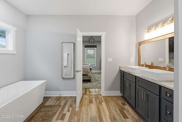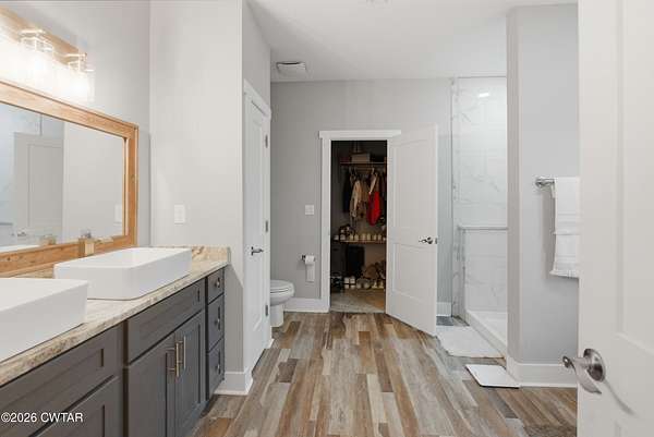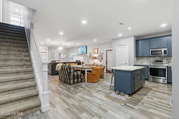 - Breakfast Bar, Ceiling Fan(s), Ceramic Tile Shower, Commode Room, Double Vanity, Eat-In Kitchen, Kitchen Island, Pantry, Primary Downstairs, Walk-In Closet(s)