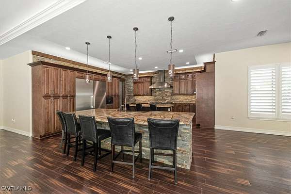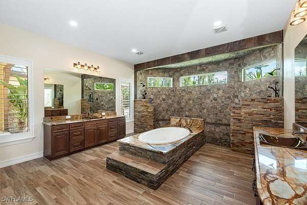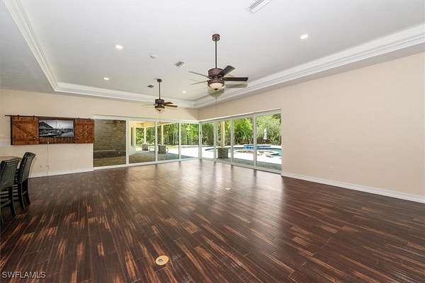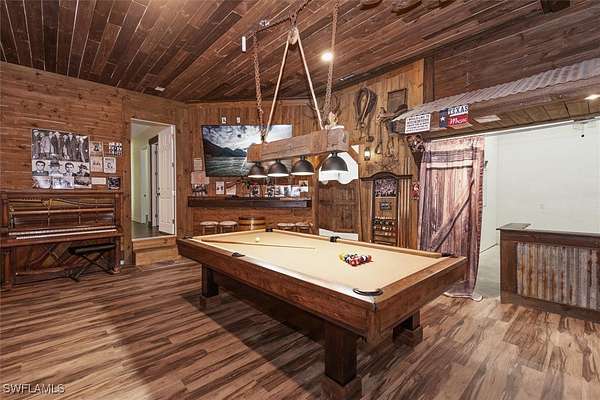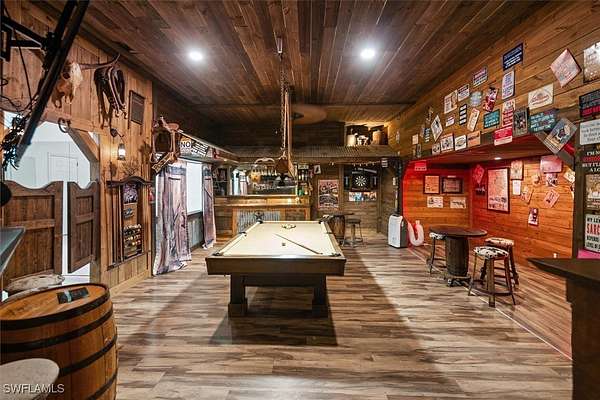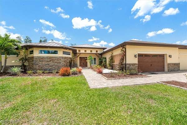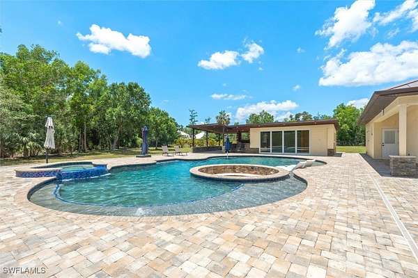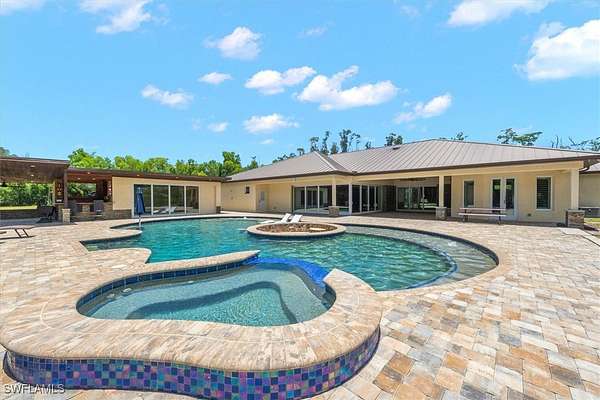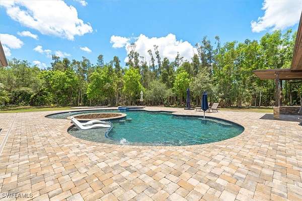 Experience both luxury and tranquility in this newly constructed 2020 Pool Home, situated on 4 acres within Briarcliff's prestigious estate community in South Fort Myers. This property offers exceptional amenities and a peaceful environment for discerning buyers. Every detail was meticulously considered in the construction of this 5,146 square foot estate. The open floor and centrally located kitchen make this home well suited for hosting gatherings. The kitchen will surely meet the standards of even the most discerning chefs. Some notable features include Miele 36" refrigerator and freezer, 60" wolf gas oven range with 4 burners, gas gridle, gas grill with dual ovens, pot filler, 30" Miele speed oven/microwave, Miele coffee maker, Miele tri-level dishwasher, 2 oversized islands & copper service sink. Enjoy the fun and sun poolside! This resort-style heated saltwater lagoon pool offers an array of features, including a 10-person hot tub, multiple sun pads with umbrella shade, a subsurface fire pit with barstools, LED lighting system, outdoor kitchen, air-conditioned cabana, and a pool bath. The enormous master suite with ensuite bath is any women's dream! The shower features His/Her digitally controlled rain heads and temperature selection, soaker jacuzzi jet tub, dual vanities with bronze waterfall faucets & custom dress room with seated vanity and lighting. Enjoy a custom billiard room featuring a professional Brunswick pool table and an old western-themed bar, plus an attached workout room and home office. Some extra notable features to mention should include: Full house automation system which simplifies safety with exterior cameras and 24-hour video and audio recording. Standing seam Kynar coated metal roof with powered attic vents, hurricane rated windows and doors, pocket sliders with zero corner, wood floors throughout, exotic level granite, 5x8 storage area, 14 ft diameter firepit with lighting & complete full house reverse osmosis treatment system.
