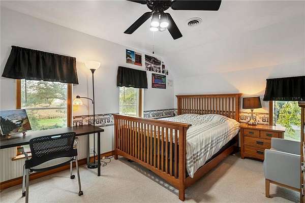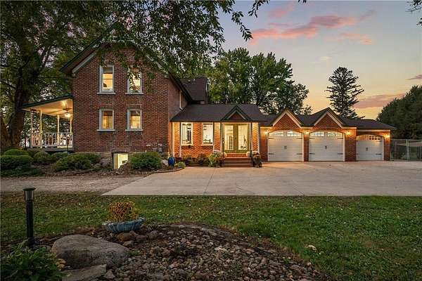 Step inside the brick farmhouse of your dreams set on 3 gorgeous acres! Originally built in 1900, this stunning home has been thoughtfully and elegantly expanded in 1997 and 2006, blending timeless character with modern updates. Inside, you'll discover rich details throughout--from crown molding and hardwood floors to beautifully tiled ceilings, intricate flooring, and stained glass windows. Every inch of this home exudes charm, craftsmanship, and quality.