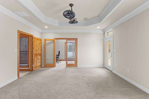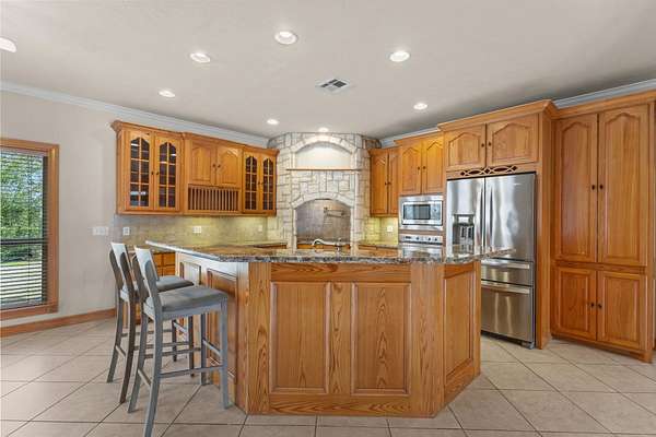 Est $6,884/moBeautiful 3 bedroom, 3 bath custom home on 18 acres featuring stunning woodwork, outdoor kitchen and peaceful country views. Generac generator. TrimLights permanent lighting for year-round curb appeal. There is something for everyone including a playhouse with kitchenette, 50 in tv and A/C that sleeps 4. 2400 sq ft metal shop complete with a full bathroom. Not to mention an 1800 sq ft barn sheetrocked, wired and plumbed large enough for RV or boat. Enjoy a stocked 5 acre pond and fish off of the 400 sq ft fishing dock. Electric entry gate and concrete circle drive.