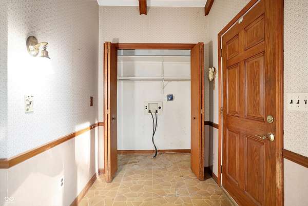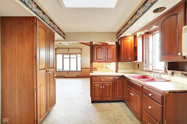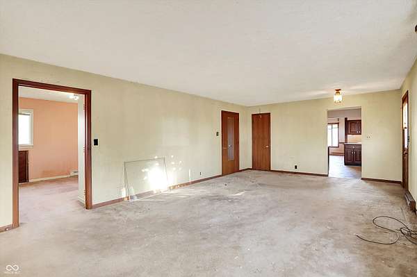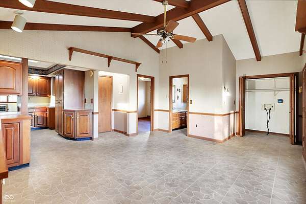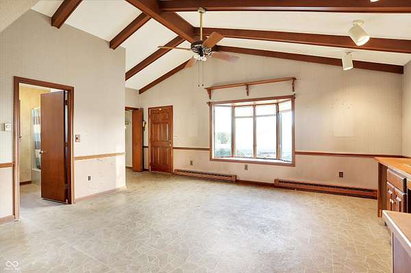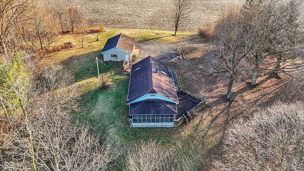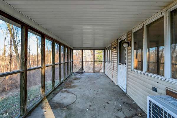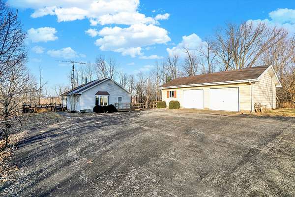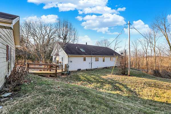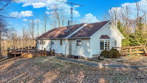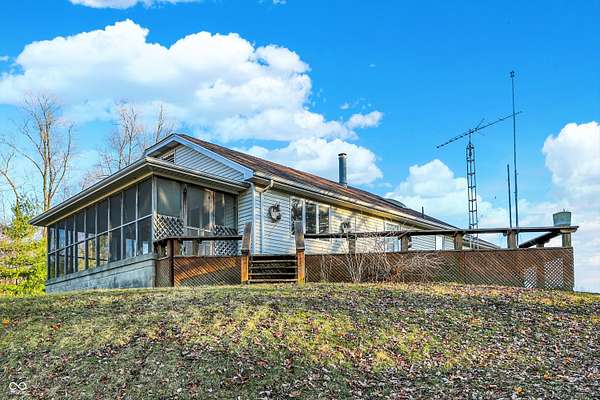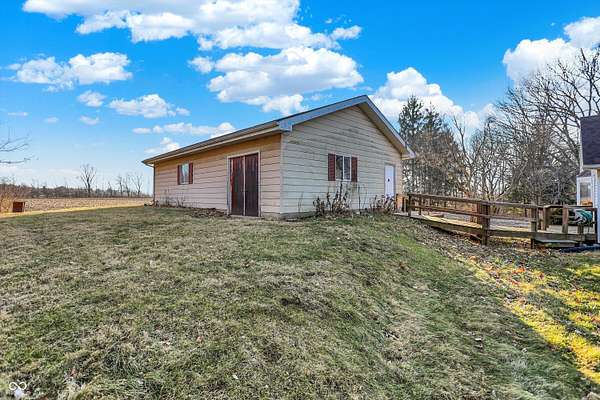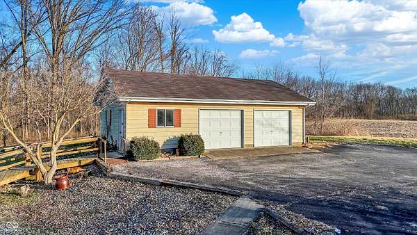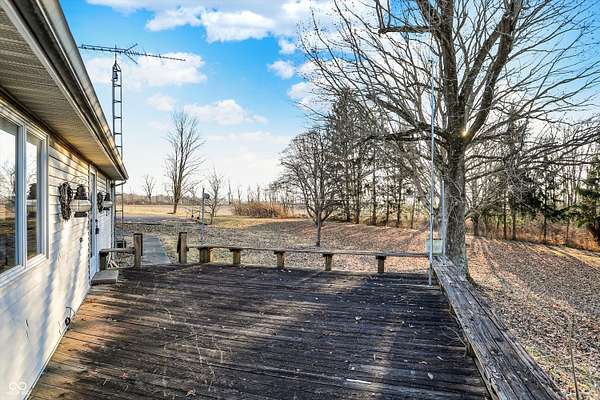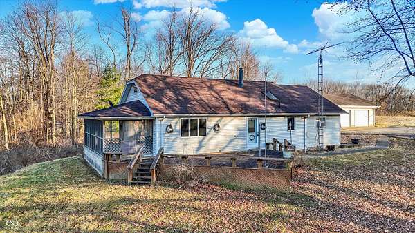 Sitting on nearly 24 acres in Rush County, this ranch-style home offers 2 bedrooms, 2 full bathrooms, and 1,716 square feet of finished living space. This home is a fixer but has great bones and solid structure, while the land provides privacy and room for a variety of uses. Inside, the home features hardwood floors, raised ceilings, skylights, woodwork and a large enclosed front porch and wrap around deck. A full unfinished basement provides storage or the option for future expansion. Outside, a detached 2-car garage with workshop space accommodates equipment, hobbies, or storage needs. The property includes over 23 acres, with 13 acres tillable and zoned agriculture/residential. The property is being sold as-is.