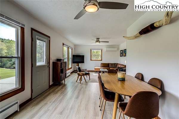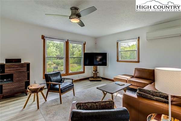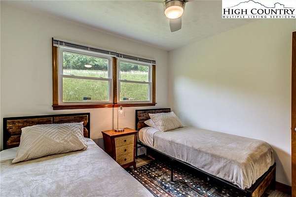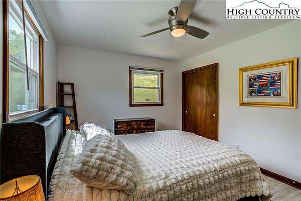 This beautifully renovated 3BR/1BA cottage sits on approximately 24.67 acres in Laurel Springs and offers a rare blend of modern updates, mountain charm, and abundant natural water features. The home features an open-concept kitchen, living, and dining area created by removing interior walls, along with a full interior repaint, new kitchen countertops, backsplash, dishwasher, low-profile microwave, and garbage disposal. Additional upgrades include a newly tiled bathroom with heater and exhaust fan, updated electrical outlets and Decora switches (several with USB ports), new flooring throughout, three new exterior doors with built-in blinds, new electric baseboard heat and thermostats, an attic fan, whole-house water filter, PEX plumbing, LED basement lighting, ceiling fans, wireless alarms and motion sensors, and new pull-down attic stairs with plywood flooring. Exterior improvements include a newly built Trex deck, refreshed landscaping and flower beds, painted outbuildings, and a fully updated spring house with new pavers, door, window, pump, and piping. The property also features new tree and shrub plantings and a newly constructed bridge across the stream. With multiple outbuildings, a well-equipped workshop, wooded trails, and several streams running throughout the acreage, this one-of-a-kind mountain retreat offers exceptional privacy, natural beauty, and outdoor enjoyment-an increasingly rare find at this scale.