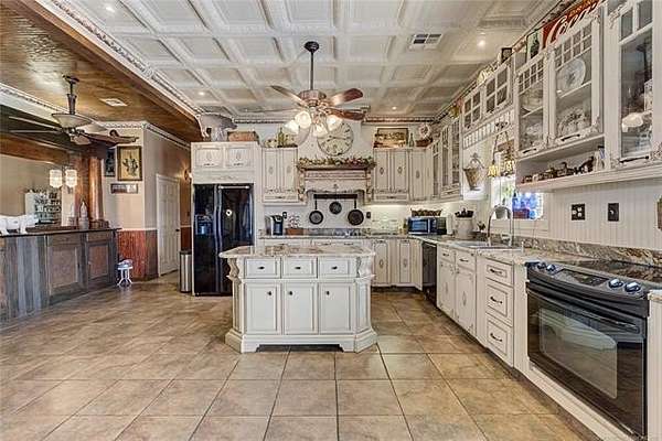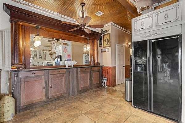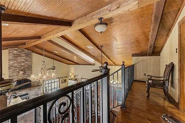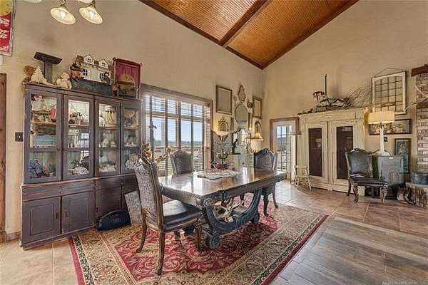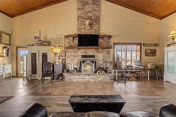 Immaculate country retreat on 60 breathtaking acres! This beautifully maintained 4-bedroom, 2-bath home offers the perfect blend of comfort, character, and wide-open space. Approximately 70% of the land is open pasture, with 30% wooded for privacy and recreation, plus a picturesque pond that enhances the peaceful setting. Step inside to an inviting open-concept floor plan designed for both everyday living and entertaining. The living room features soaring vaulted ceilings and a stunning fireplace that creates a warm focal point, while a staircase leads to an upper landing that overlooks the living area below-adding architectural interest and an airy, spacious feel. Tile flooring flows throughout the living room, kitchen, and dining areas for style and easy maintenance. The home is full of character, including antique interior doors on the lower-level rooms. A unique "hidden room" offers flexible space for storage, hobbies, a playroom, or a private retreat. Every detail reflects pride of ownership throughout this immaculate property. Enjoy the outdoors from the covered patio, ideal for relaxing and taking in the beautiful surroundings. Located just across the road from a small public lake, the property offers scenic lake views and convenient access to outdoor recreation. Additional features include a large storage building/workshop, perfect for equipment or projects, as well as a former guest house ready for updates-providing excellent potential for extended family or rental opportunities. A rare opportunity to own a pristine home with acreage, water features, character, and endless possibilities! 60 ac. Is being sold from larger parcel, Final legal description to be determined with survey by closing.