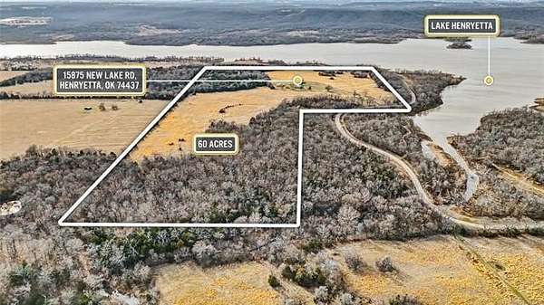 From Hwy 75 and Main Street in Henryetta, turn west on Main St. to Lake Road. Turn south on Lake Rd to New Lake Rd. Turn west on New Lake Rd. and follow around Henryetta lake to property on south side of road. GPS may show address as 15875 D3988 Rd.