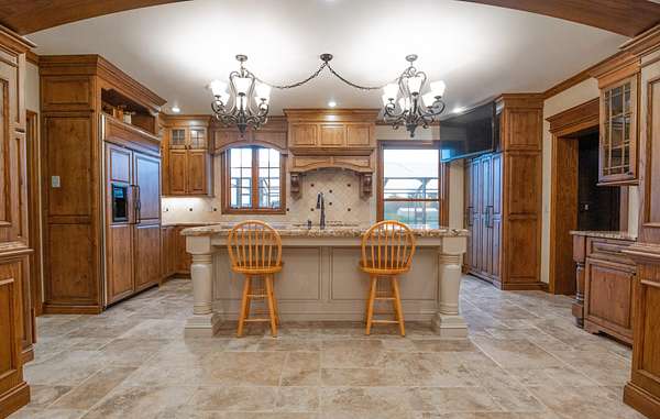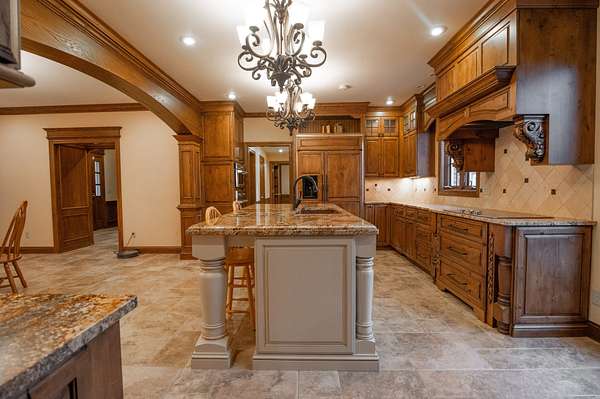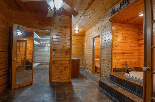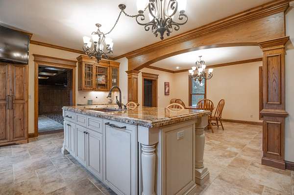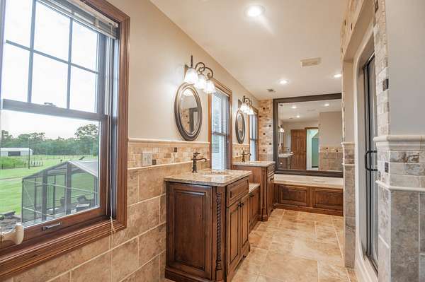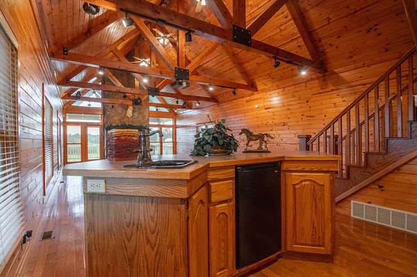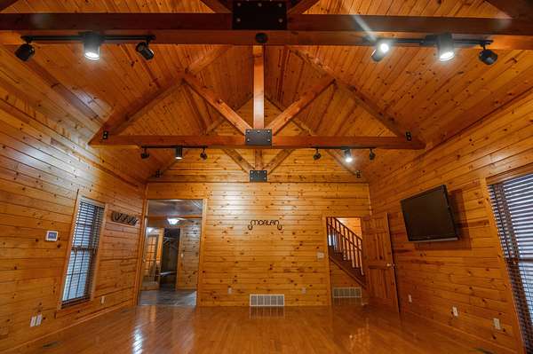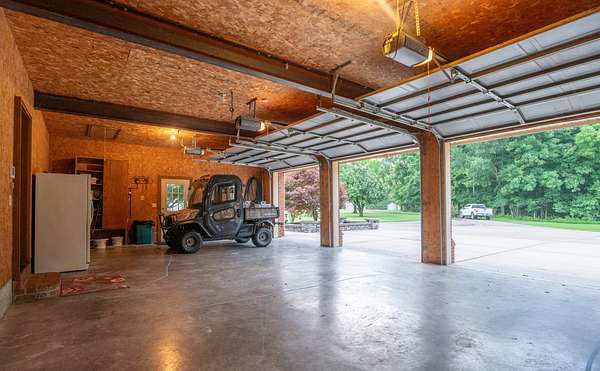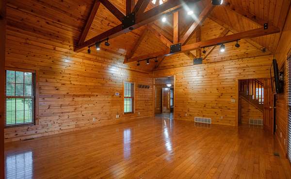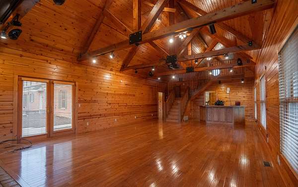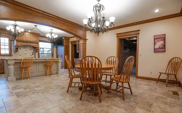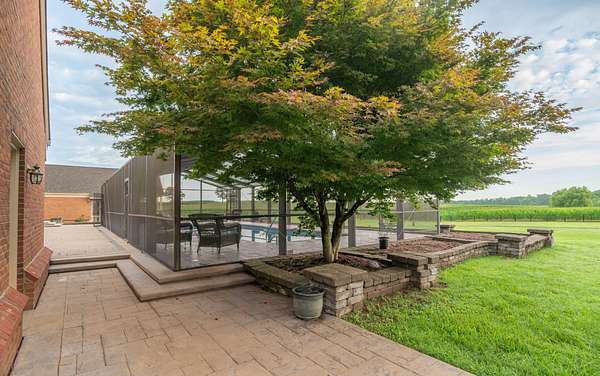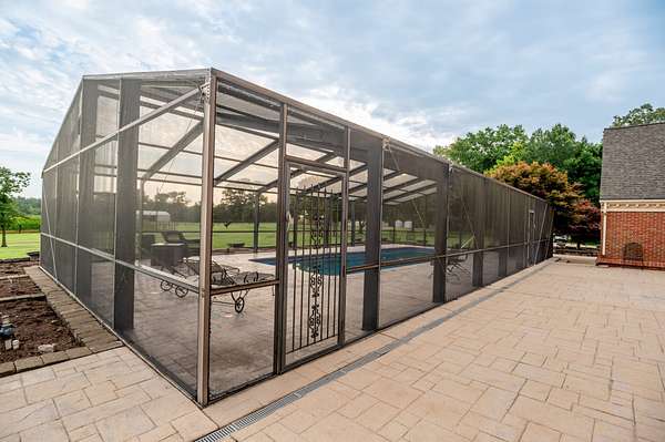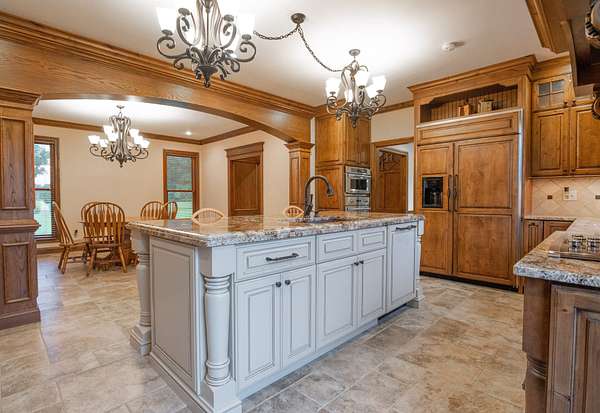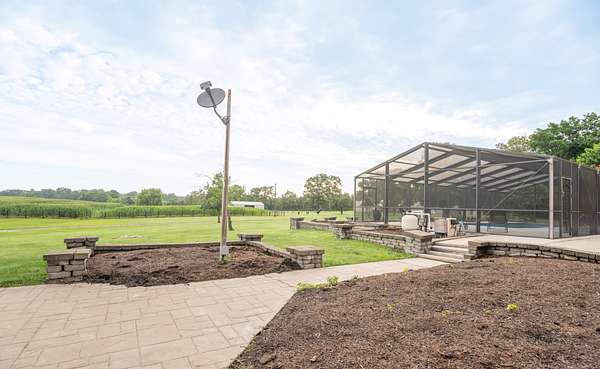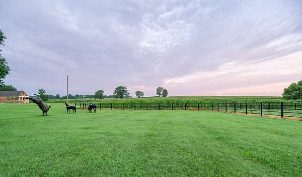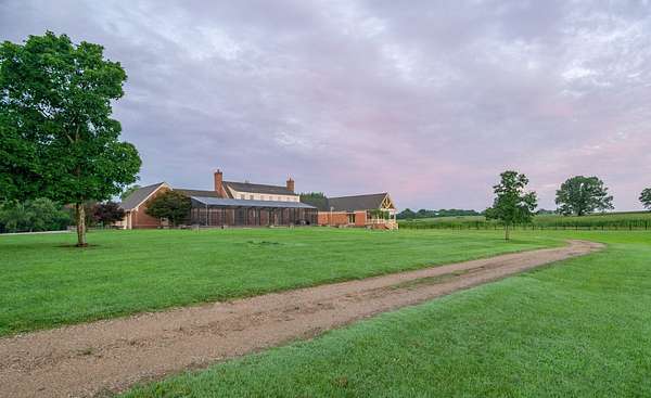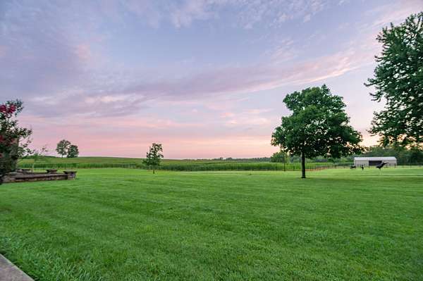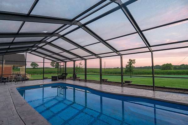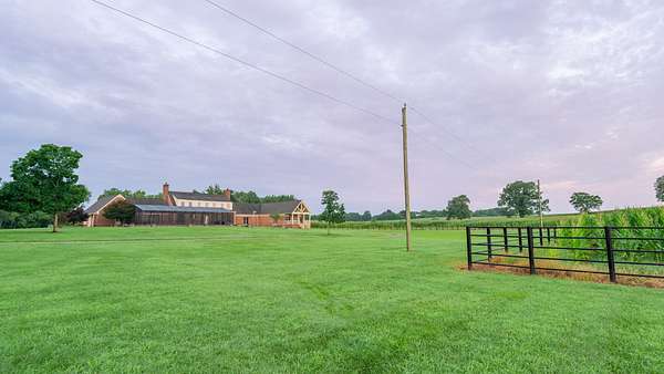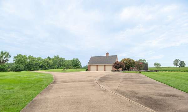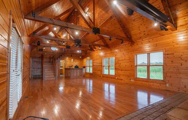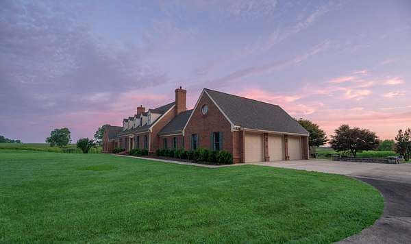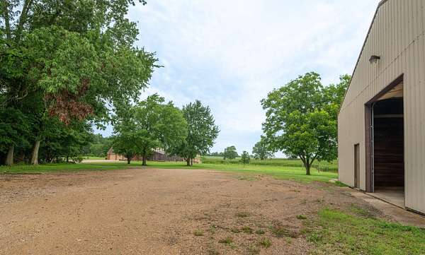 Discover the serenity of countryside living at this stunning colonial-style estate on 60 acres in Bloomfield, MO. The beautifully crafted 8-bedroom, 4-bathroom home features real hardwood throughout, from the walls and ceilings to the sturdy floors. A luxurious kitchen with custom cabinetry, granite countertops, and high-end appliances offers a perfect space for cooking and gathering. Primary bathrooms feature large jetted tubs for ultimate relaxation, while the screened-in heated pool provides year-round enjoyment. The land offers endless opportunities, including farming, pasturing animals, and exploring wildlife. A secondary residence within the shop building offers fully equipped living quarters, a tack room, and storage for equipment or ATVs. Here, life slows down, and the beauty of the land becomes part of your everyday routine.