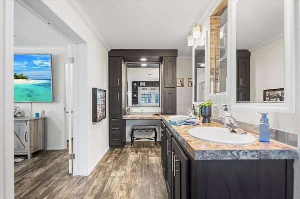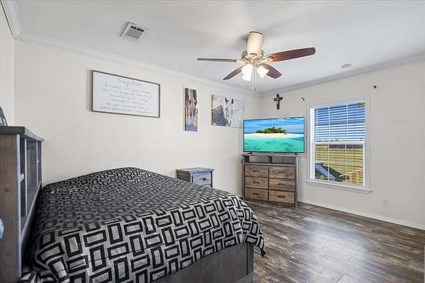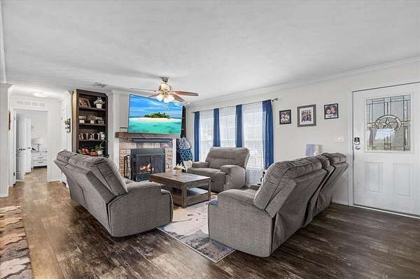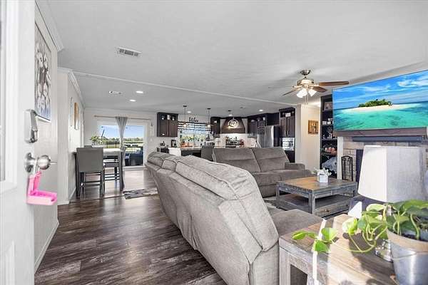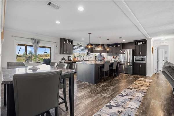 2019 double wide manufactured home on 5 acres in Wills Point ISD featuring 4 bedrooms and 2 bathrooms with upgraded tape and textured walls throughout. Interior highlights include ceiling vents for improved energy efficiency and flexible furniture placement.