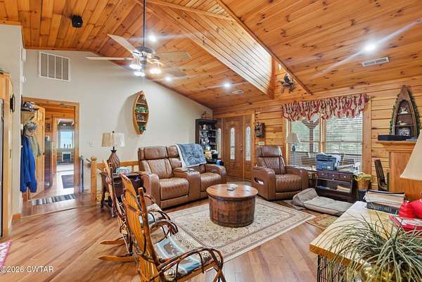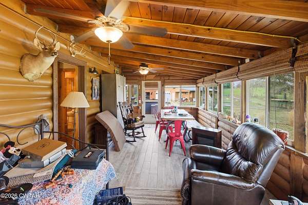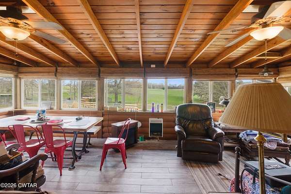Step into paradise on this +-37 acre property with 3 water structures. Enjoy morning and evenings on front, back or side porches, sunrooms or at the dock down in the park area on this property. Enjoys cool evening sitting around the super cool fire fit area. Bring the animals cause this is fenced and cross fenced . 43x53 shop/barn with 15x28 side shed. The home is a log structure with 3 BR 3.5 BA. Updated kit appliances and counter tops. The master has double vanity, 2 walk in closets, tile shower. Off the master bedroom is a 24x12 sunroom surrounding by lots of windows to enjoy your farm. Open kitchen looks into greatroom with 2 story ceiling, gas fireplace. Travel down into the basement where you find a wood burning fireplace, kitchenette, 2 bedrooms, rec room/den, 2 bathrooms. What a dream home, make it yours today. Call Tami Info deemed accurate, not warranted by co seller or agent. Sq ft and taxes to be determined by appraiser and assessor.
