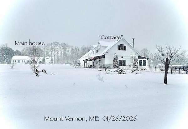 Country Elegance Meets Family Harmony. Discover a peaceful two-home family estate set on 61 +/-scenic acres of open fields, rolling hills, wooded trails and an array of thriving berry gardens. Designed for connection, creativity, and country living, this exceptional property offers room to roam and space to grow--all surrounded by the natural beauty of many local lakes and charming villages. This property perfectly blends rural tranquility with convenient access to recreation and community. Many additions and renovations since 2016. A 2nd home 'The Cottage' was completed in 2019. The Cottage has an attached 30x50, three car heated garage, 12' ceilings, three 10'x10' doors, electric car recharging plug & generator hook up. Also added to property: 2 wells, 2 septic tanks, many out buildings, fenced pastures, riding arena, heat pumps, outdoor wood boiler, cozy wood stoves, new siding & new roof to name a few. This property has been home to multi generations, has separate guest suite and is move in ready for a new family to create their own estate and or business with plenty of options. This property is an easy commute to 3 local hospitals, shopping, wonderful restaurants, University of Maine and local regional airport with Cape Air service. Well known summer Camp Laurel, Camp Vega & the prestigious Kent's Hill School just up the road.