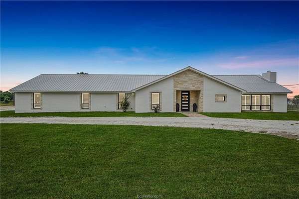 EASY TERMS AVAILABLE with owner. No Bank Necessary OR Get your LOWEST payment with a special interest rate BUYdown! Modern, updated 6 bedroom 3 bath farmhouse on sprawling 10+ acre tract of land. Spacious home with huge rooms throughout including gameroom & study area. High ceilings & Open floor-plan. Oversized master suite with walk in closet & built ins. Fully updated kitchen & bathrooms. walk in pantry. Mudroom. Fireplace in living room, Recessed LED lights & updated fixtures throughout. Recent wiring & pex piping. Propane gas. private Well, metal roof. Tankless water heaters. 8 Ft entry door. Fiber optic wired for surround sound & cameras. Spray foam insulation, fresh painting throughout, polished concrete floors, 3 A/C units. Updated insulated windows (Black-Exterior/White interior). Backyard oasis including Pool & Spa, gas fire pit, Astro Turf Patio. Gated Entry, cross fenced with barbed wire for cattle, large cattle barn & a brand new metal building. 3 car carport. Peaceful & quiet country setting with breathtaking sunsets. 45 minutes from Houston & 20 minutes from College Station, Low Taxes