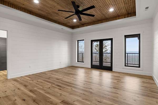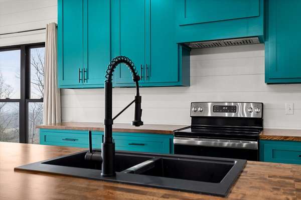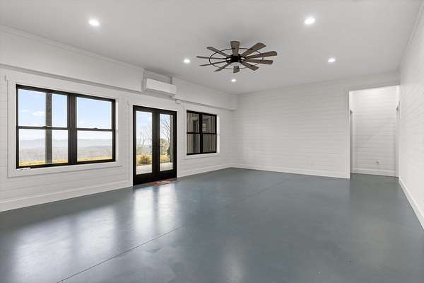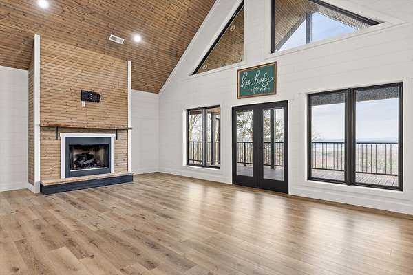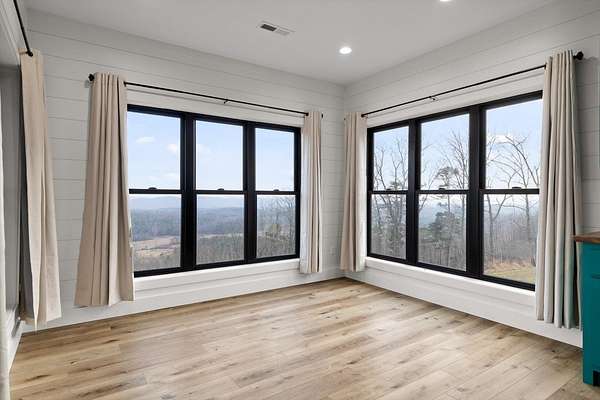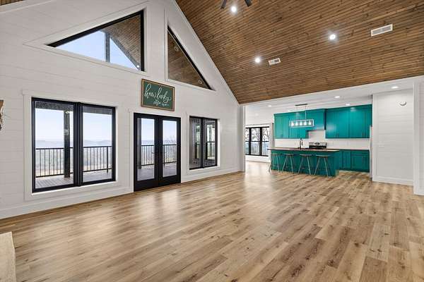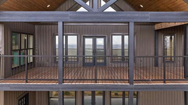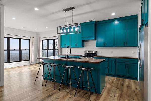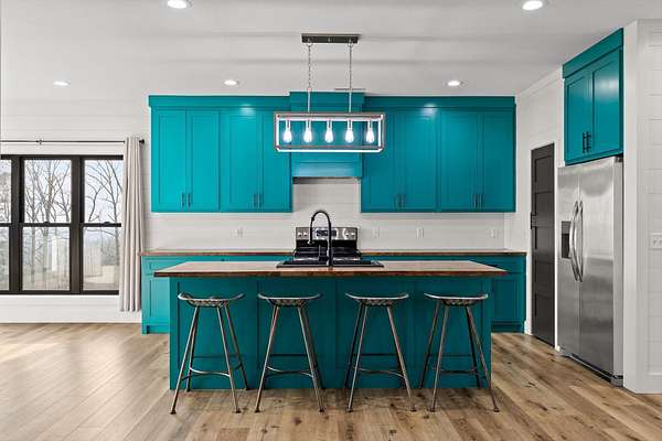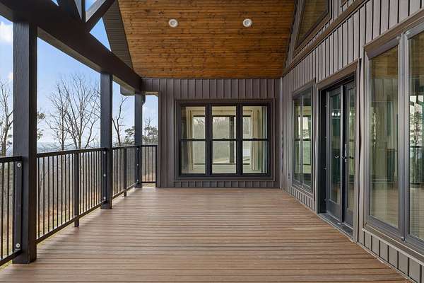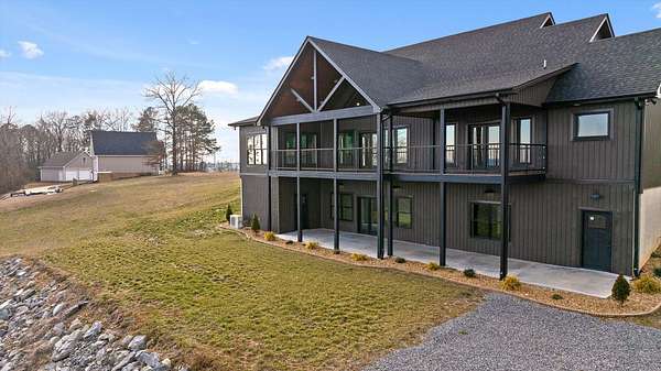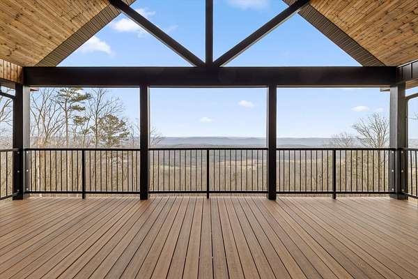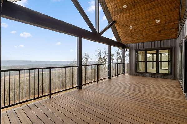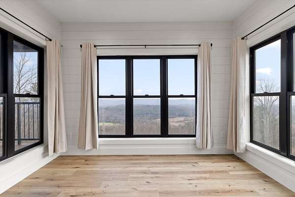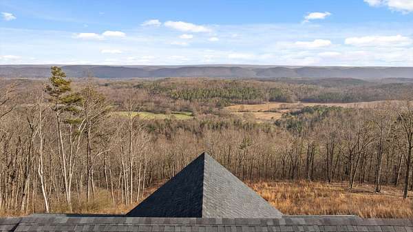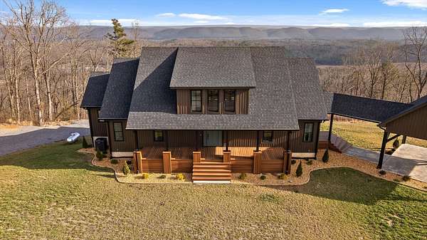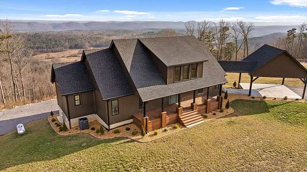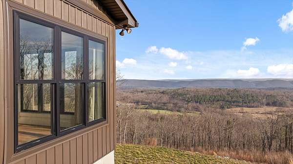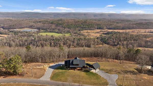 Thoughtfully designed mountain contemporary home offering space, flexibility, and comfort for everyday living. This newer residence features an open layout with vaulted ceilings, architectural horizontal wall detailing, and views from nearly every room, creating a bright and inviting atmosphere throughout. The kitchen is a standout with bold jewel-tone custom cabinetry, butcher block countertops, stainless steel appliances, and ample workspace ideal for daily use and entertaining. Living and dining areas flow seamlessly, making the layout both functional and welcoming. With five bedrooms and three bathrooms, the home provides versatility for families, guests, or work-from-home needs. A finished basement adds substantial additional living space, while a dedicated storm room offers added peace of mind. Outdoor living is enhanced by covered porches and decks overlooking the surrounding landscape, allowing you to enjoy the setting year-round. Situated on approximately 6 acres, this property offers privacy, room to roam, and a setting well suited for full-time living.