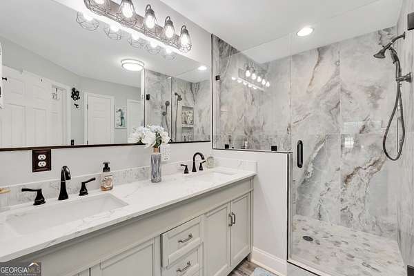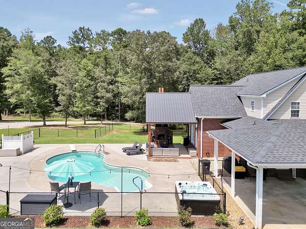 159 County Line Road, Jenkinsburg, GA - Your Private Oasis on 3 Acres! Looking for your own private retreat with room to live, work, and play? This spacious, well-maintained brick home in Jenkinsburg checks all the boxes! Nestled on 3 peaceful acres, it offers a perfect blend of modern updates, flexible living space, and outdoor amenities for every lifestyle. Inside, you'll find a host of recent upgrades, including fresh paint throughout the home, a completely renovated master bathroom featuring a luxurious walk-in shower and new LVP flooring-a true spa-like escape. The remodeled kitchen is equally impressive with new appliances including a gas cooktop, quartzite countertops, a stylish new backsplash, undercabinet lighting, and modern light fixtures that elevate the entire space. The main level features a bright and airy living room, a fully equipped kitchen with a walk-in pantry, a laundry room, a half bath, and a relaxing primary suite with completely remodeled ensuite, and a spacious walk-in closet. Upstairs, you'll find two generously sized bedrooms, each with its own walk-in closet, and a full bath. The fully finished basement offers endless possibilities-complete with a second kitchen, living area, full bathroom, and space that can serve as two additional bedrooms. With a private entrance and parking pad, it's ideal for guests, extended family, or even rental potential. There's also a concrete 8x15 safe room for added peace of mind. Outdoor living is just as spectacular. Enjoy evenings by the outdoor fireplace, soak in the new hot tub beside the sparkling in-ground pool in a fenced yard, or get to work in the 31x36 detached workshop with its own 18x36 lean-to. The lean to has a 50amp RV plug and water, so bring the RV. The property is serviced by both county water and a private well, giving you flexibility and reliability. Whether you're seeking multigenerational living, income potential, or simply a peaceful place to call home, 159 County Line Road offers it all. Don't miss your chance to own this one-of-a-kind property-schedule your private showing today!