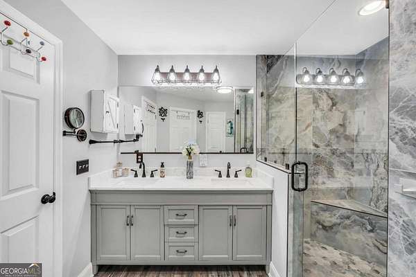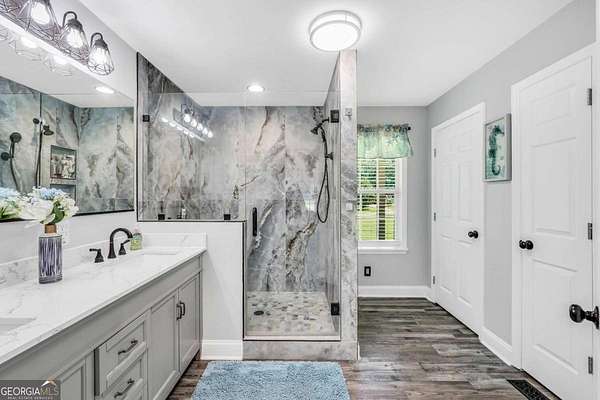 159 County Line Road, Jenkinsburg, GA - Your Private Oasis on 3 Acres! Looking for your own private retreat with room to live, work, and play? This spacious, well-maintained brick home in Jenkinsburg checks all the boxes! Nestled on 3 peaceful acres, it offers a perfect blend of modern updates, flexible living space, and outdoor amenities for every lifestyle. Inside, you'll find a host of recent upgrades, including fresh paint throughout the home, a completely renovated master bathroom featuring a luxurious walk-in shower and new LVP flooring-a true spa-like escape. The remodeled kitchen is equally impressive with new appliances including a gas cooktop, quartzite countertops, a stylish new backsplash, undercabinet lighting, and modern light fixtures that elevate the entire space. The main level features a bright and airy living room, a fully equipped kitchen with a walk-in pantry, a laundry room, a half bath, and a relaxing primary suite with completely remodeled ensuite, and a spacious walk-in closet. Upstairs, you'll find two generously sized bedrooms, each with its own walk-in closet, and a full bath. The fully finished basement offers endless possibilities-complete with a second kitchen, living area, full bathroom, and space that can serve as two additional bedrooms. With a private entrance and parking pad, it's ideal for guests, extended family, or even rental potential. There's also a concrete 8x15 safe room for added peace of mind. Outdoor living is just as spectacular. Enjoy evenings by the outdoor fireplace, soak in the new hot tub beside the sparkling in-ground pool in a fenced yard, or get to work in the 31x36 detached workshop with its own 18x36 lean-to. The lean to has a 50amp RV plug and water, so bring the RV. The property is serviced by both county water and a private well, giving you flexibility and reliability. Whether you're seeking multigenerational living, income potential, or simply a peaceful place to call home, 159 County Line Road offers it all. Don't miss your chance to own this one-of-a-kind property-schedule your private showing today!
