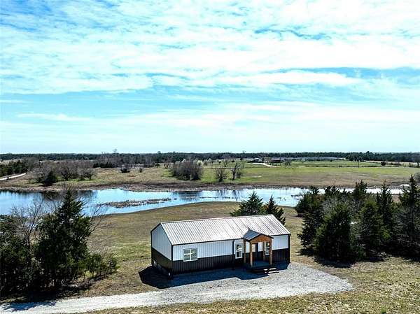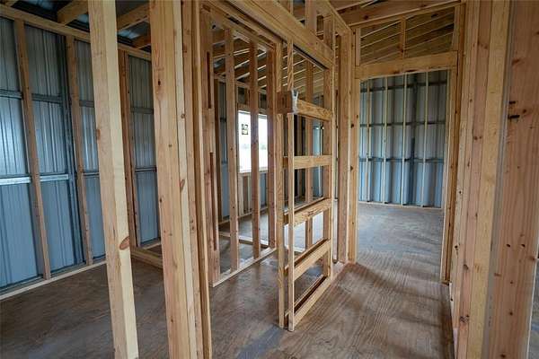 Discover your own private retreat with this 10.82-acre farm and recreational property, featuring rolling hills and a scenic lake view. At its heart sits a gorgeous 26-pier design barndominium, already framed. Planned with 2 bedrooms, 1 bath, a spacious kitchen, living area, and separate utility room, this home offers a versatile layout full of potential. The barndominium is set with water and electricity already in place, including 200 Amp box along the driveway and inside the utility room. It just needs septic, HVAC and interior finish-out to make it complete. Large pergo-style windows and doors fill the space with natural light while capturing stunning views of the nearby lake. Enjoy your back porch overlooking a huge fire pit, perfect for gatherings and recreation. Outdoor enthusiasts will love the abundant whitetail deer, and excellent fishing in the stocked pond. Whether you're searching for a hunting retreat, recreational getaway, or your dream country homestead, this property is a rare find with endless potential.