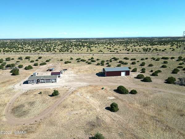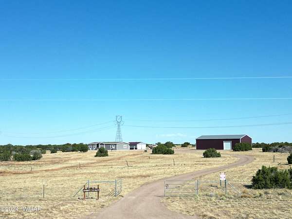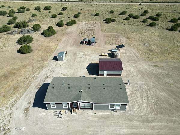 Discover your perfect escape in this stunning property located just a short drive from St. Johns, Arizona. Nestled in the serene landscape, this unique retreat offers both tranquility and modern amenities. The beautiful manufactured home features spacious living areas, abundant natural light, a well-appointed kitchen, and a stunning primary bathroom. Enjoy the breathtaking views from your large windows or step outside to soak in the fresh mountain air. This property is equipped with a reliable well with solar power, providing all the water you need for comfortable living, gardening, agriculture, and livestock. The 40x70 large metal building offers ample space for storage. This home is a true sanctuary for those seeking privacy and a connection to nature. Escape the city and see it today!