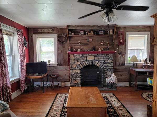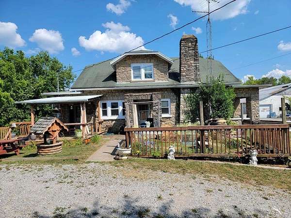 Est $993/mo1936 Stone house on 4.5 acres located just out of town on a dead end road. This home has 4 bedrooms, 2 fireplaces, large dining room, eat in kitchen, covered front porch and lots of charm. This property is listed at a price that would allow you to do all the upgrades and have an amazing home and property. There is a 20' X 24' metal building that could be used as a garage or shop. Another small